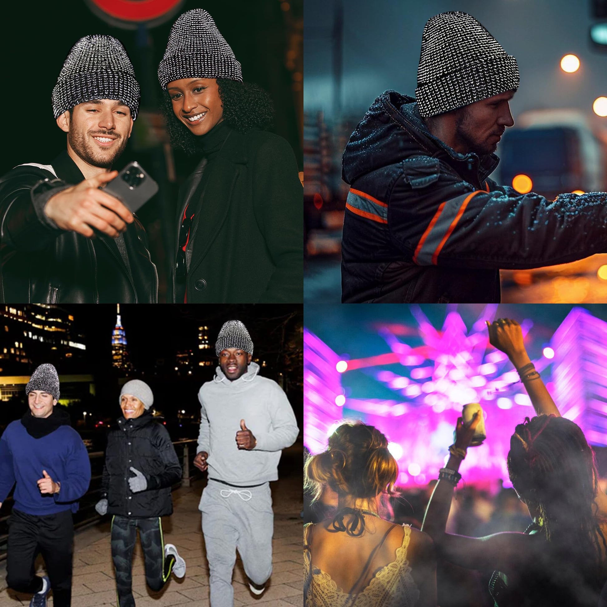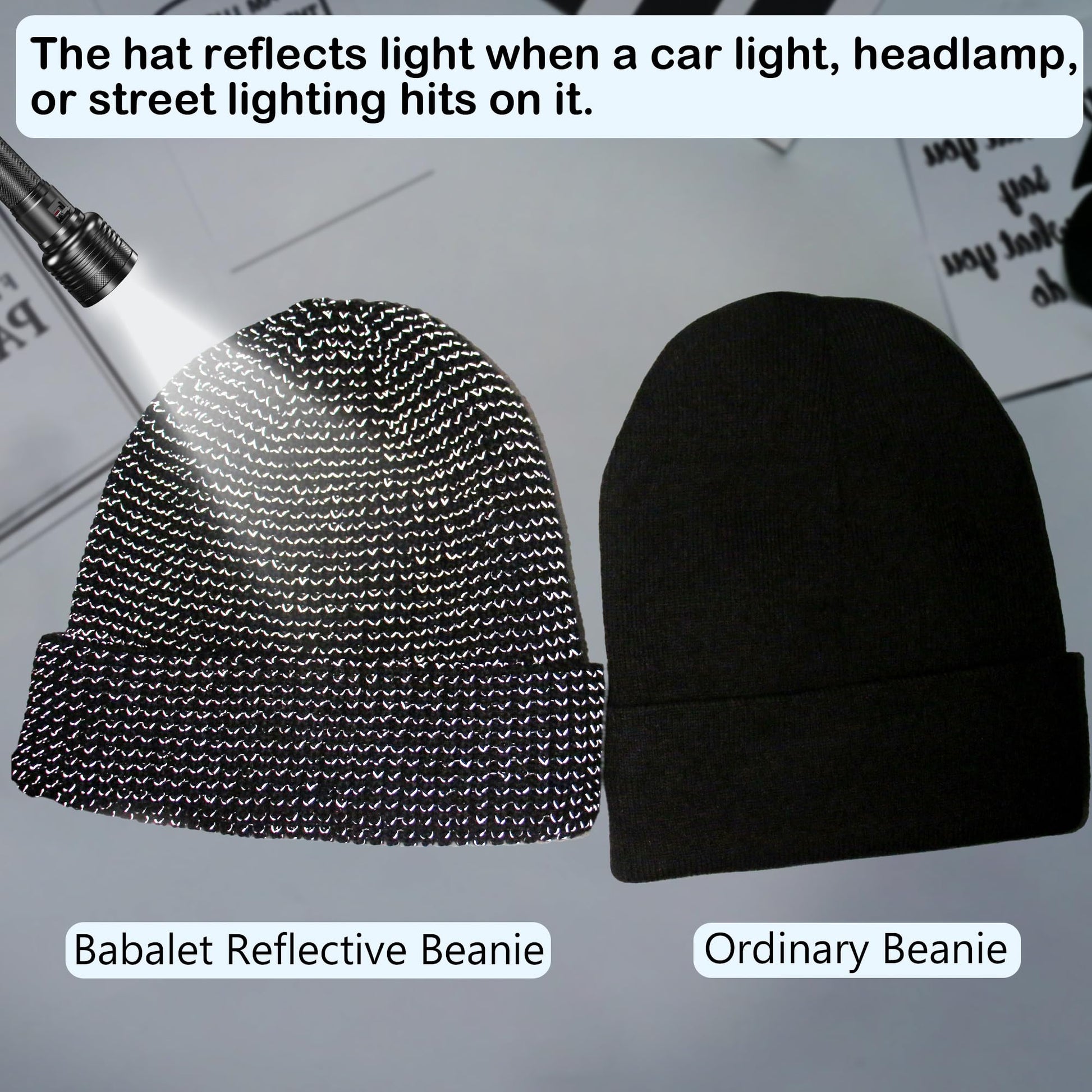 - HIGH VISIBILITY AT NIGH: Offer you more safety when you're running and working at night. The whole knit beanie is weaved with high-quality reflective yarn, when you're in a dark place, this cap will stand out by reflecting the light from vehicle lamps, headlamps, or street lightings