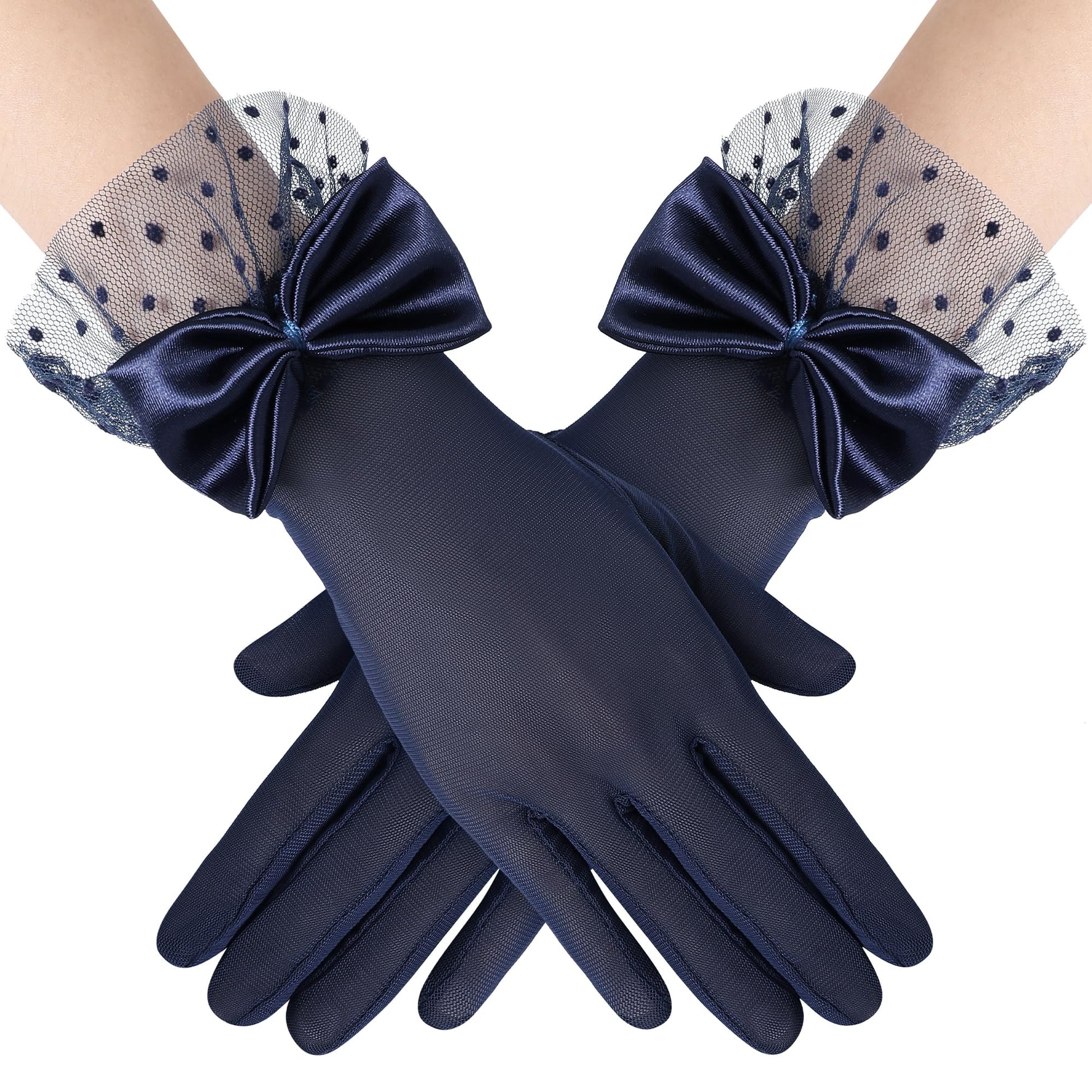 BABEYOND Lace Gloves for Women - Bow Short Prom Gloves Evening Elegant Accessories for Wedding Opera Party