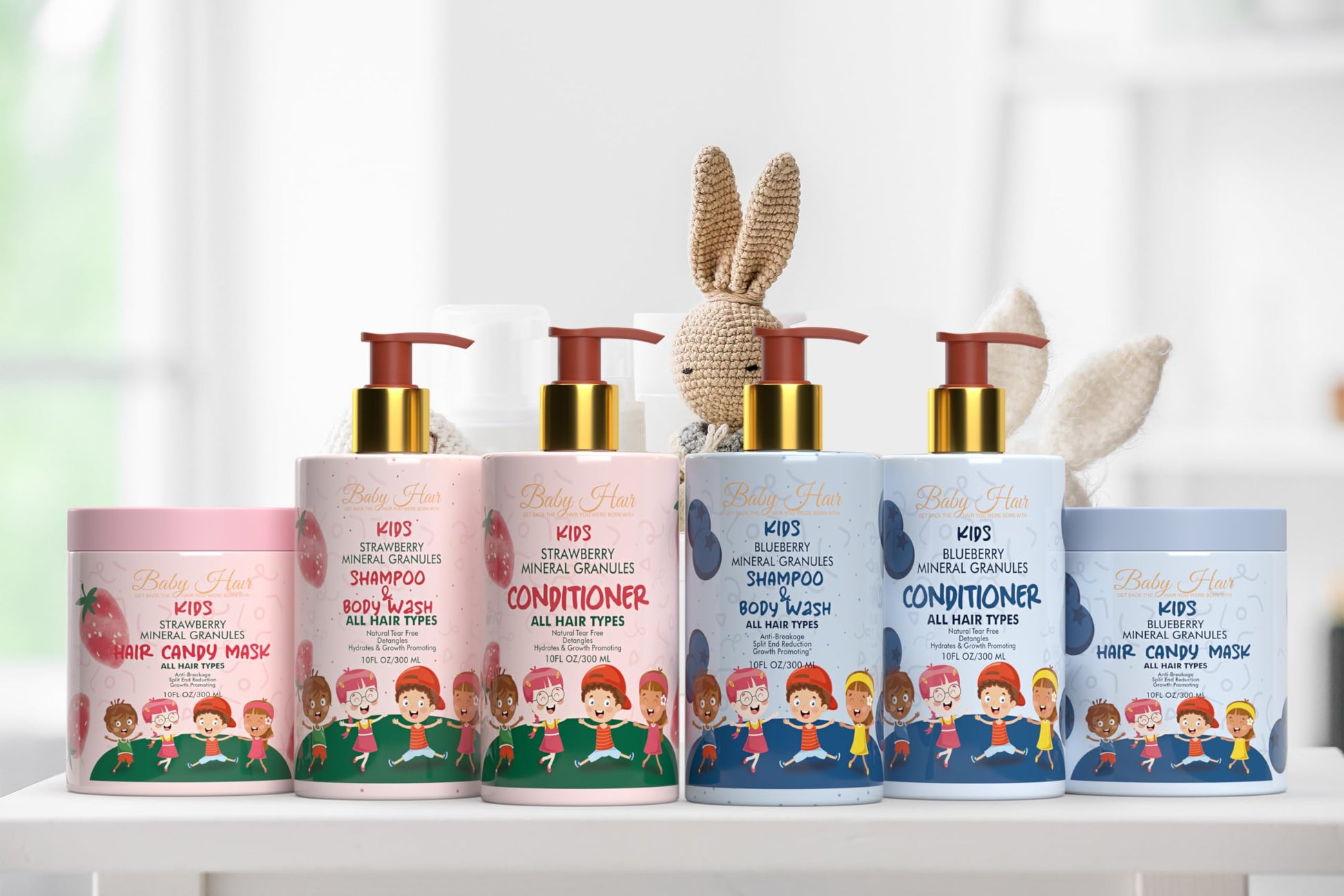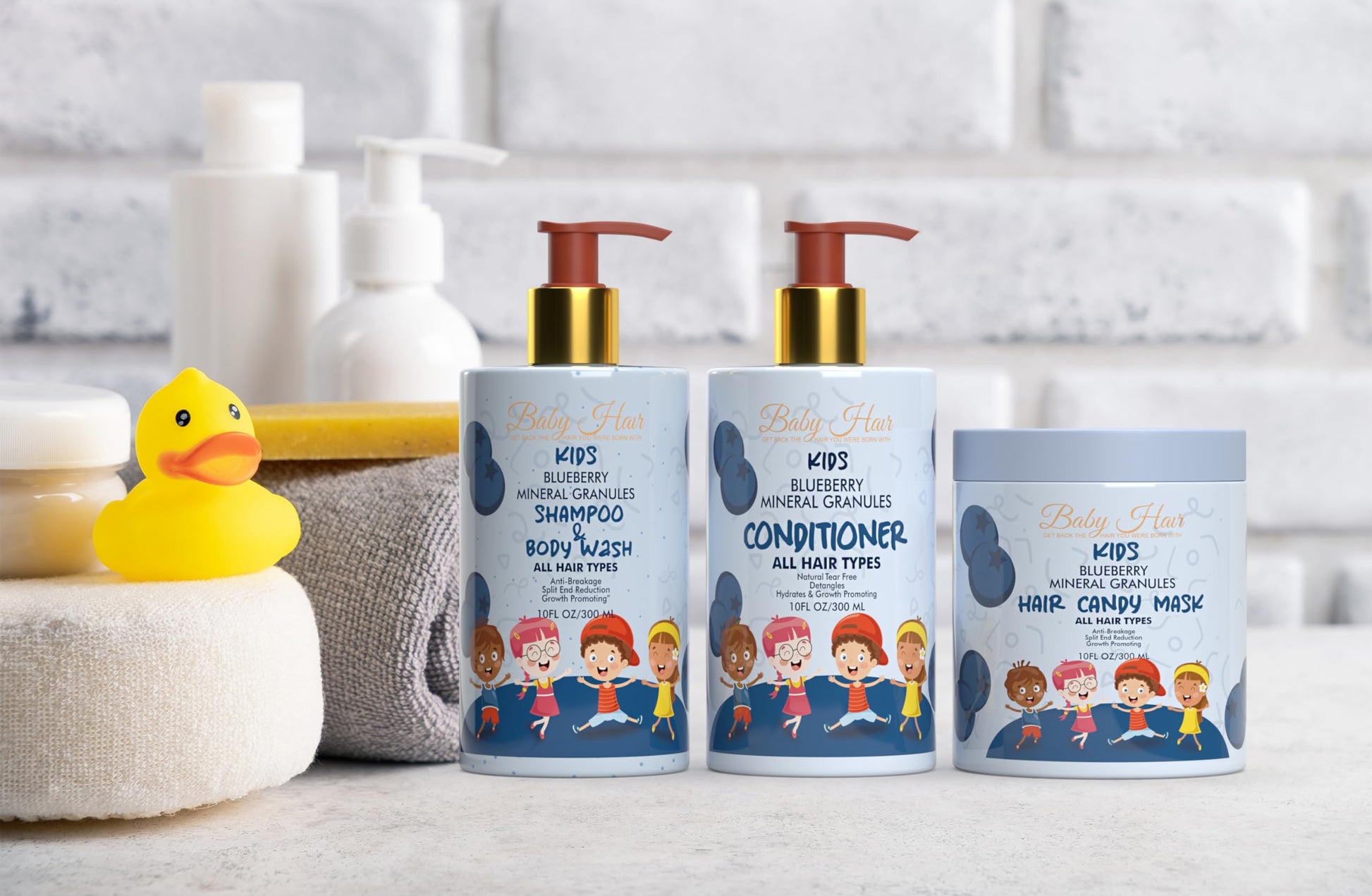 Baby Hair - Blueberry Mineral Toddler Shampoo/Body Wash, Conditioner, and Hair Mask Set, Sulfate-Free Shampoo and Conditioner with Strawberry & Blueberry Oil, Detangling Shampoo for Kids, 10 fl.oz.