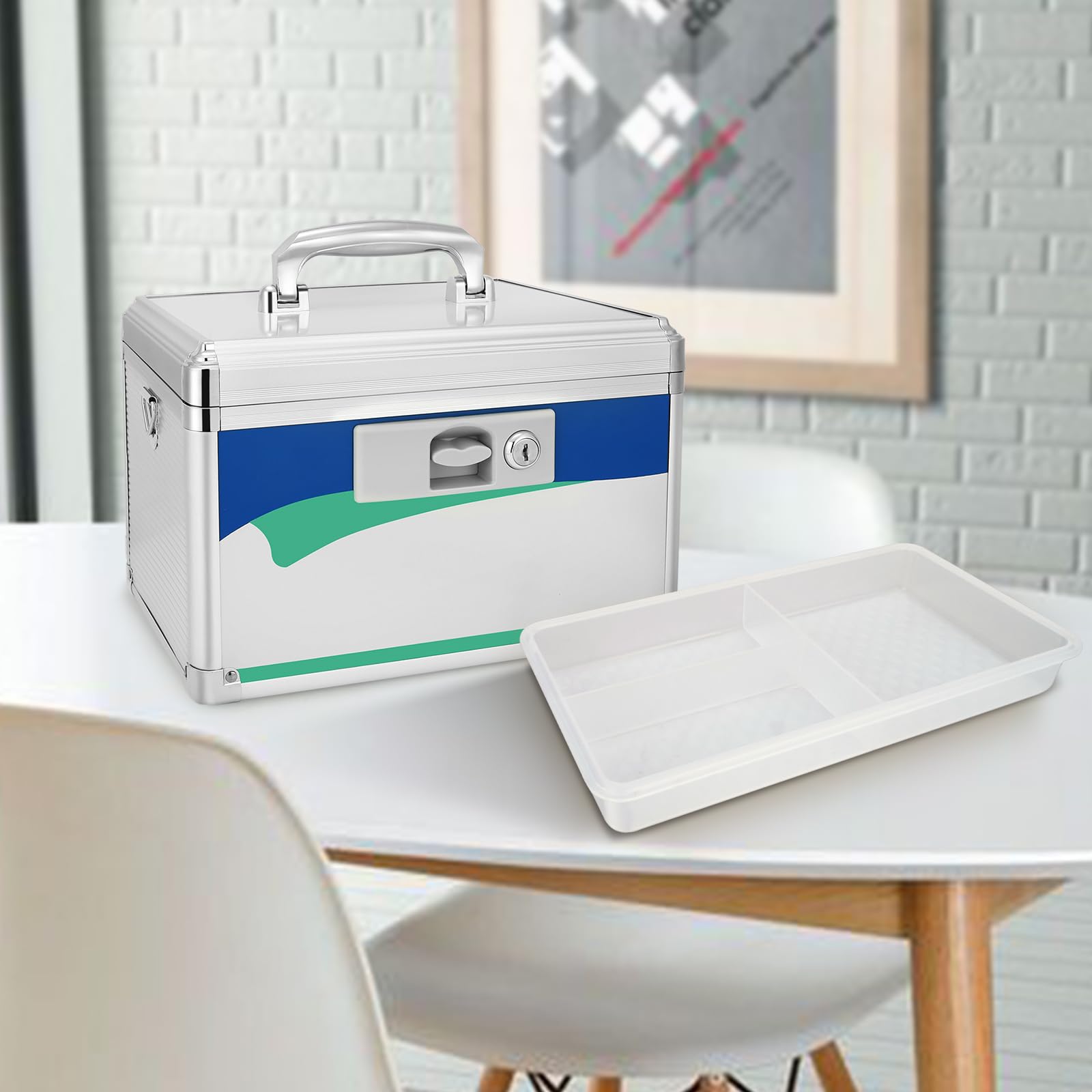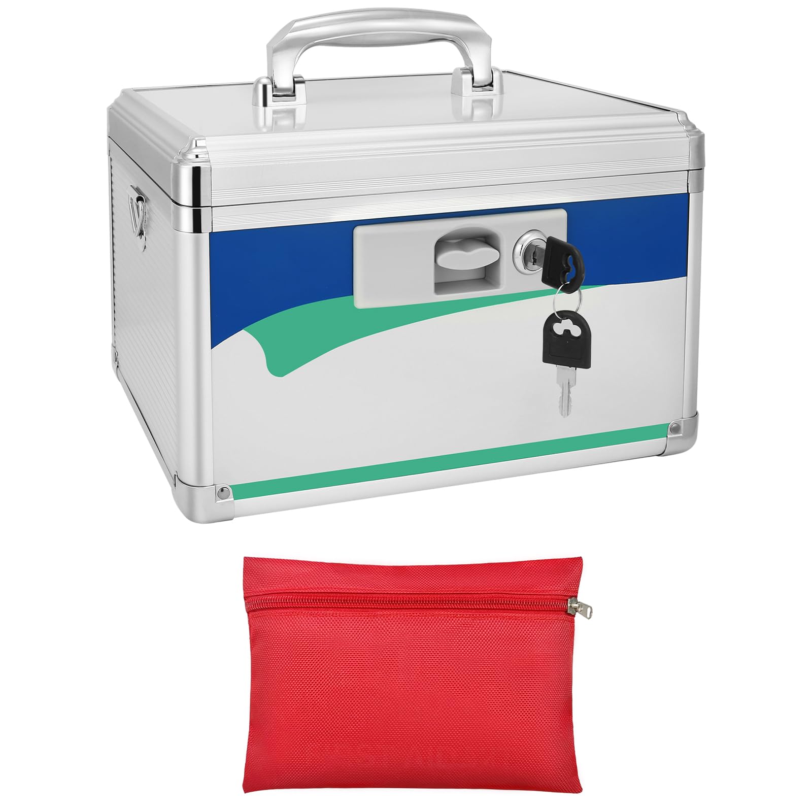 BAGAKE 12-Inch Medicine Lock Box - Keyed Security for Home & Outdoor Use | Lockable Storage Box Durable Aluminum Design | Fits Family Essentials 11.2'' x 7.6'' x 7.6'' Blue