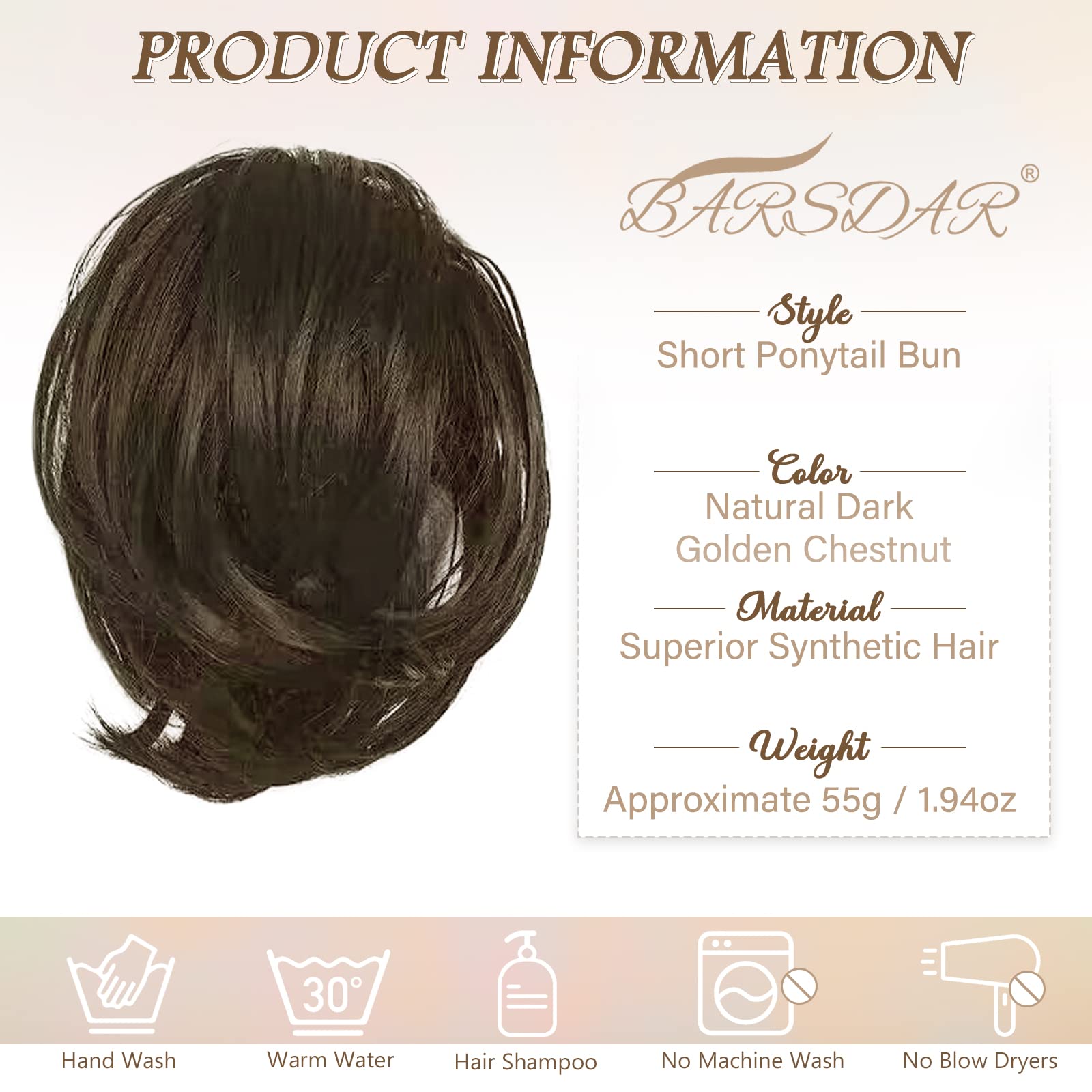 - 【Ideal Hair Bun Ponytail Extension】This gorgeous hair bun scrunchie by BARSDAR is an absolute must-have! It's a fun, innovative ready-to-wear hairpiece that's perfect for creating a casual and fresh look. The fluffy straight hair with slight curls at the end is absolutely gorgeous and ideal for rocking a stylish hair bun or a short ponytail.