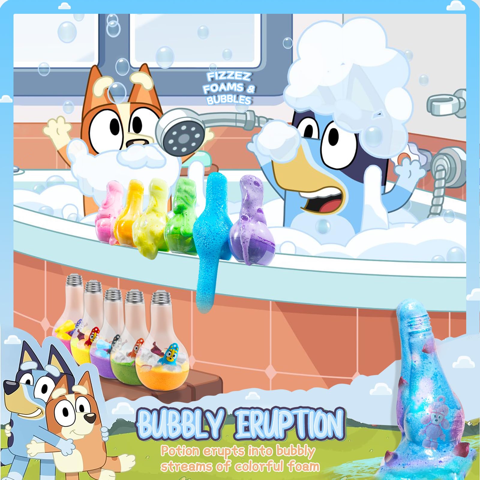 - đăExquisite BATH & STEM Gift SetăThis flask potions bath bombs set transforms bath time into arts & crafts time with your favorite Heeler! These potion bath bombs for kids are the ideal addition to your collection of toddler bath toys, sensory kids bath toys or STEM bath toys for kids. It comes in a surprise packaging with toddler toys, which is ideal gifts for all occasions.