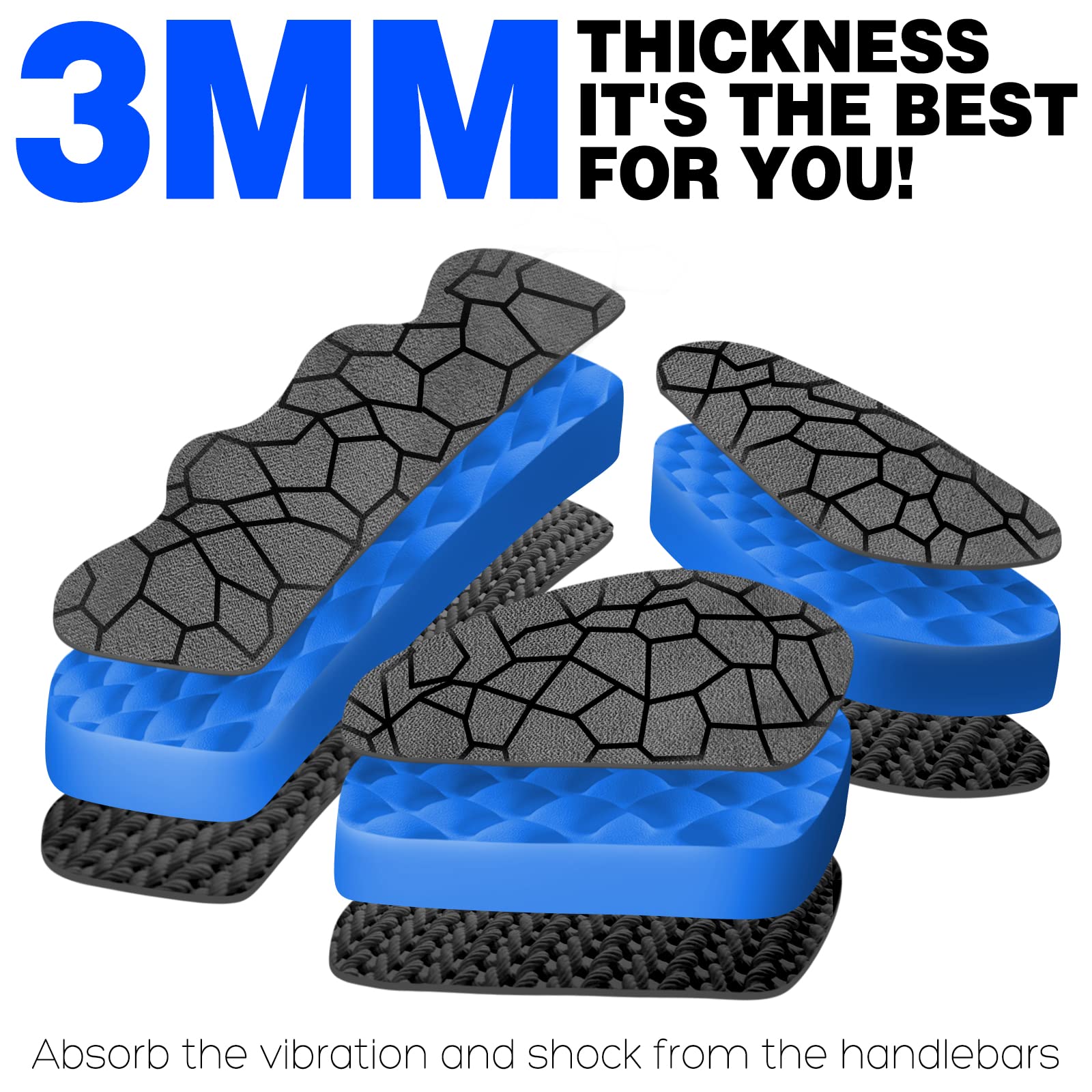 - 【Prevent hand pain&numbness】We derived from tens of thousands of consumers, 3MM thickness silicone non-slip palm pad (SBR) is the most effective to absorb the vibration and impact from the handlebar, is the most scientific thickness.Long ride,relieve hand pain and numbness,reduce hand calluses and blisters.2MM,too thin.5MM, too bulging.3MM,just right.