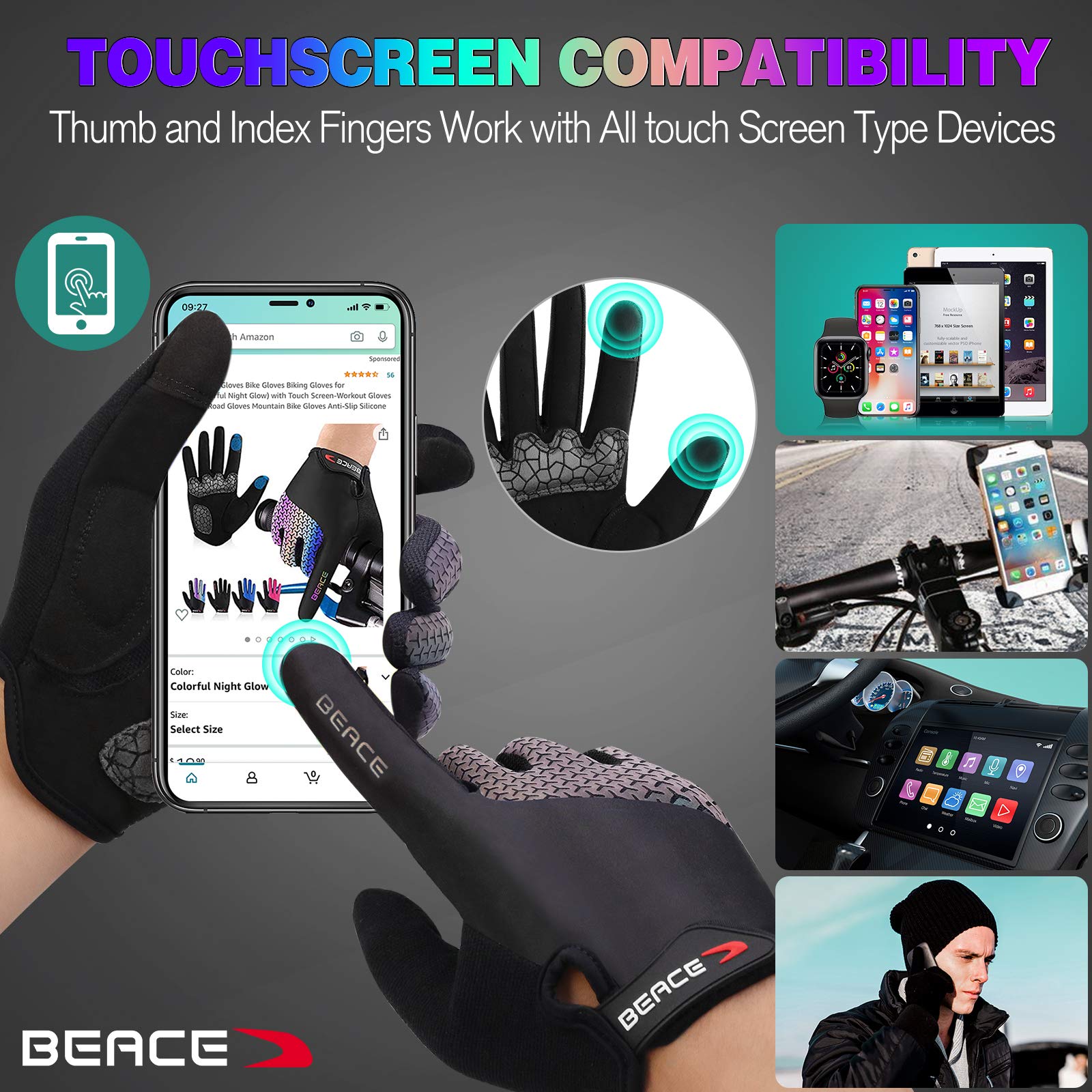 BEACE Cycling Gloves Bike Gloves Biking Gloves for Women(Colorful Night Glow) with Touch Screen-Workout Gloves Full Finger Road Gloves Mountain Bike Gloves Anti-Slip Silicone Palm