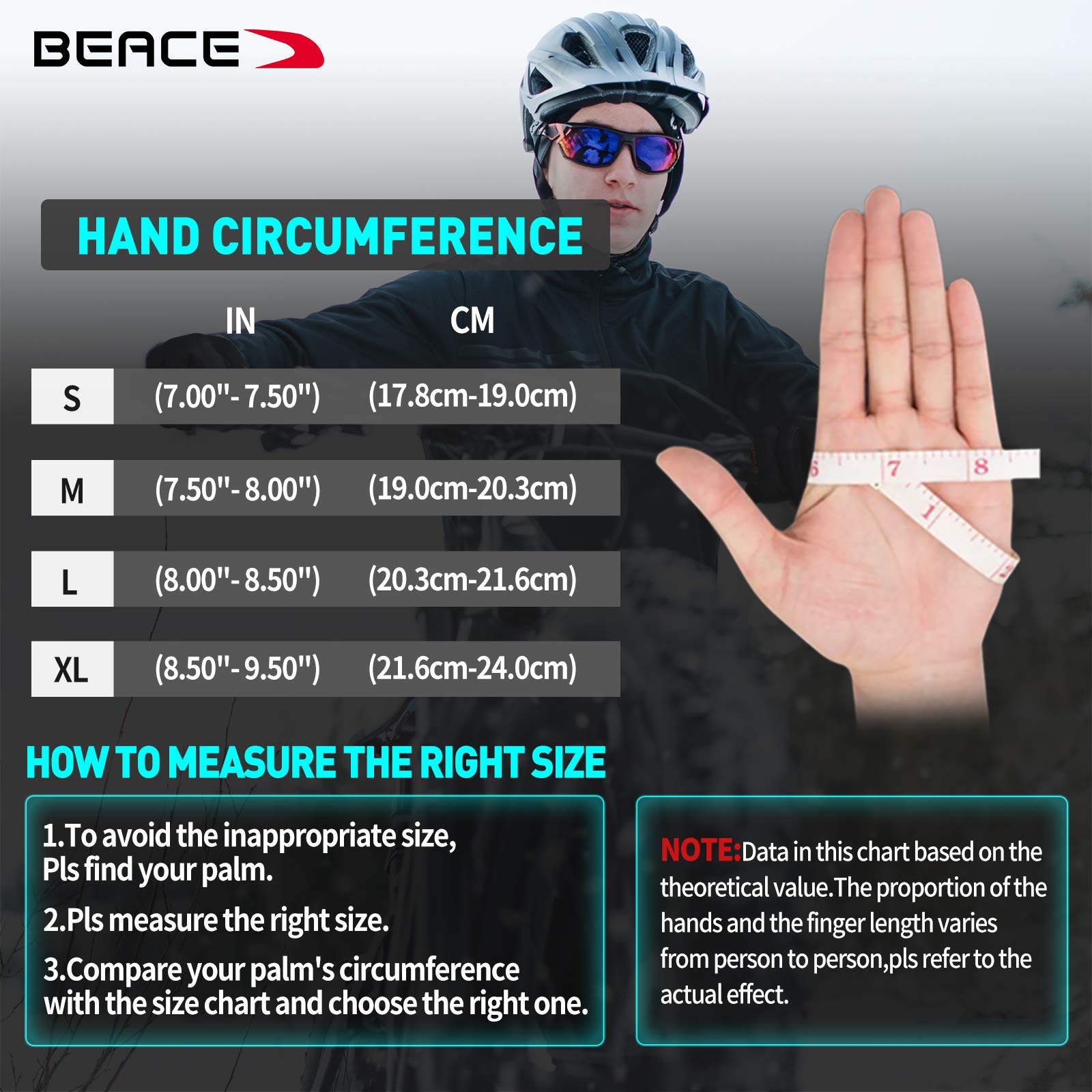 - 【SIZE】BEACE Bike gloves have Four size.S(7.0'-7.5' / 17.8-19.0CM),M(7.5'-8.0' / 19.0-20.3CM),L(8.0'-8.5' / 20.3-21.6CM),XL(8.5'-9.5' / 21.6-24.0CM).