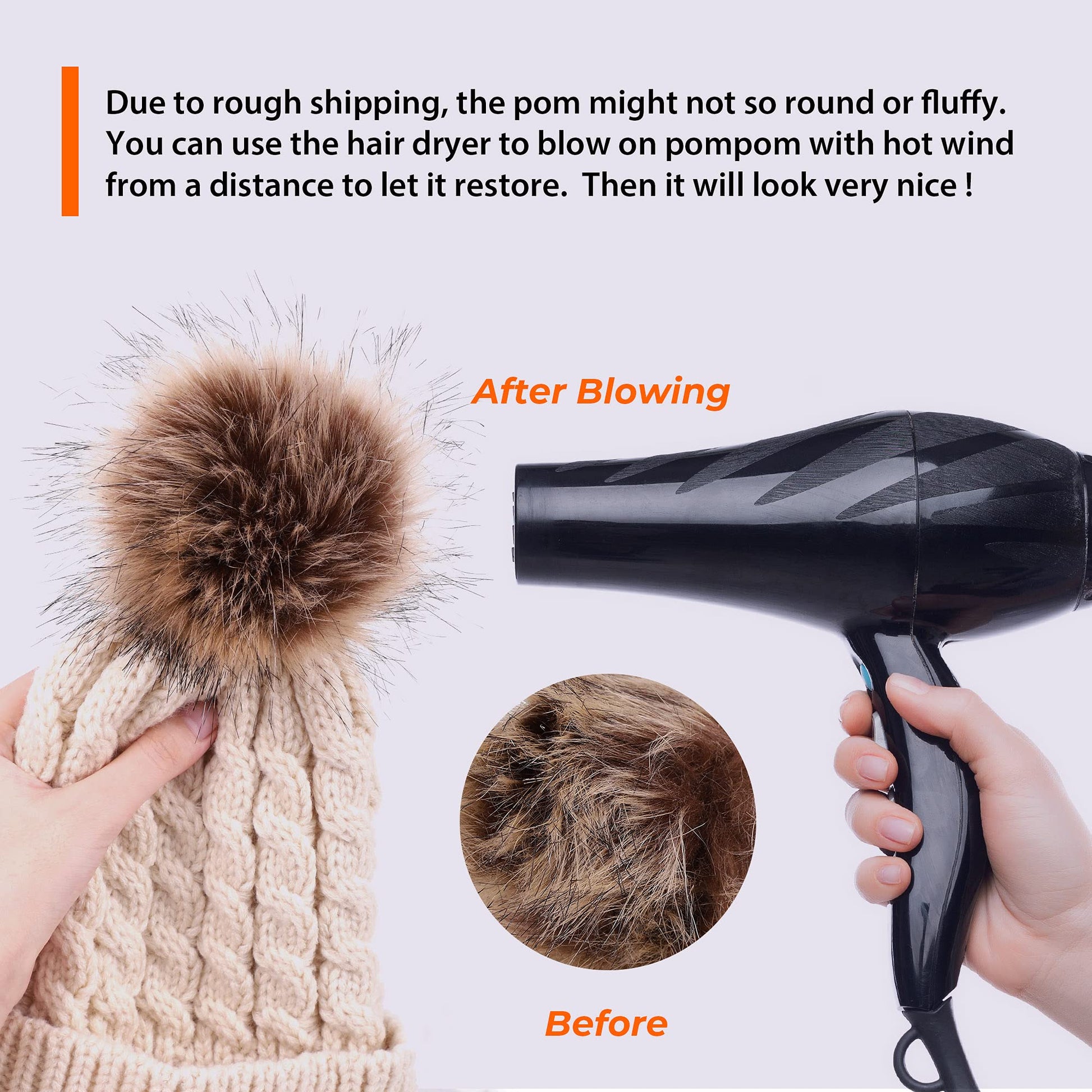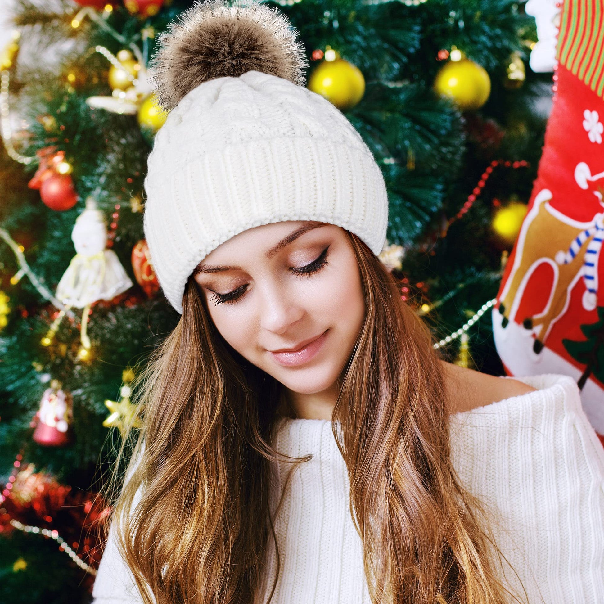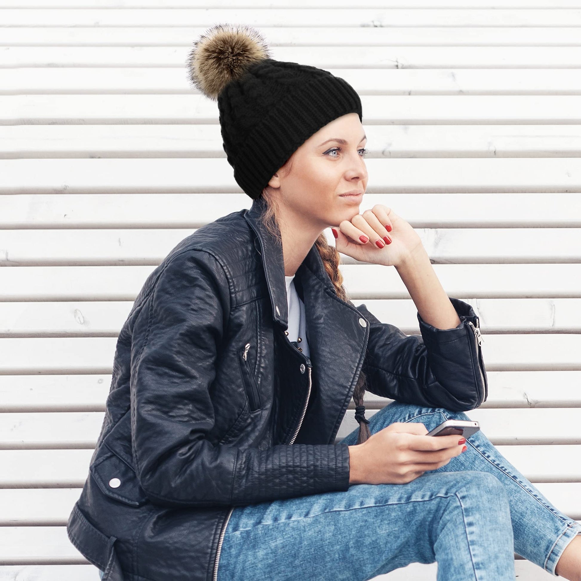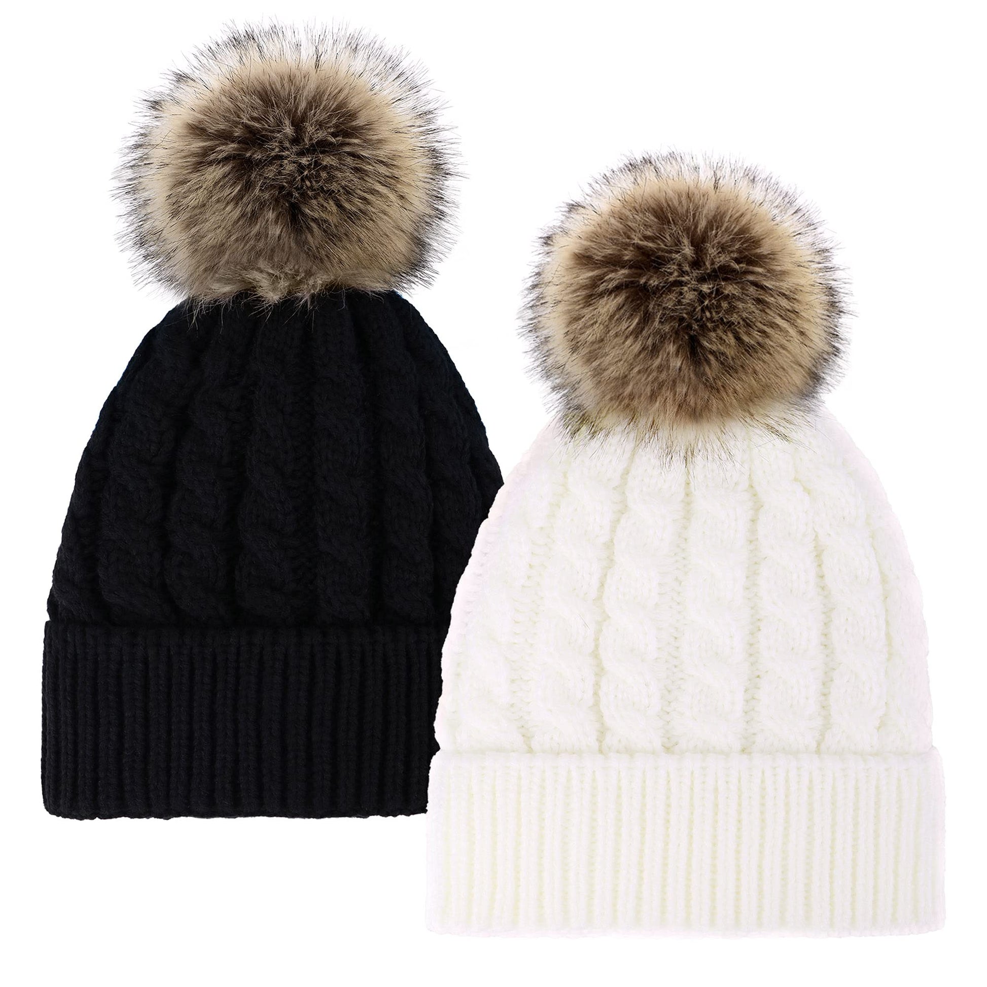 Beanie Hat Women's Winter Soft Fleece Lined Knit Pom Beanie, Lot 2_Black White