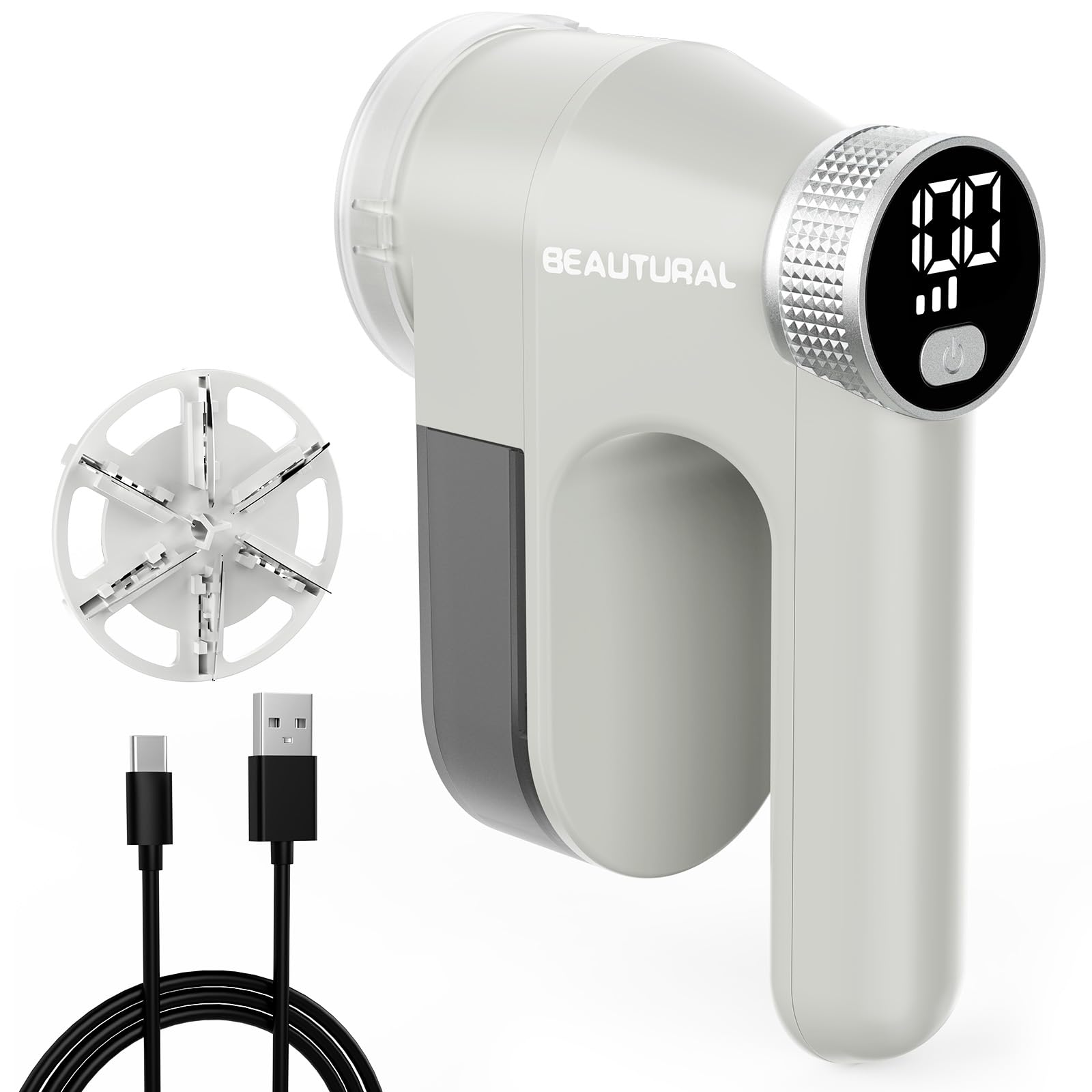 BEAUTURAL Fabric Shaver, Rechargeable Lint Remover, Electric Portable Sweater Defuzzer with 3 Speeds, 6 Leaf Blades, Digital LED Display, Remove Pilling for Clothes, Furniture, Sweater, Couch, Blanket