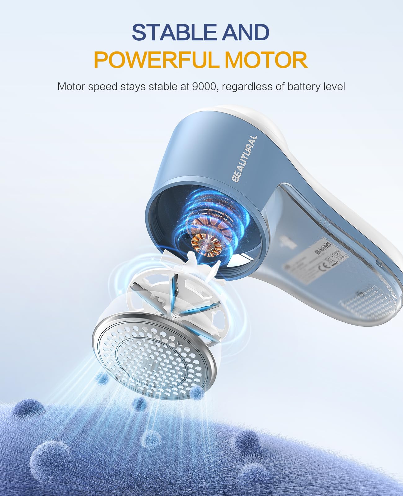 BEAUTURAL Fabric Shaver, Rechargeable Lint Remover for Clothes, Electric Lint Shaver with 6-Leaf Blades, Sweater Shavers to Fuzz, Lint Balls, Pillings, Bobbles for Clothes and Furniture