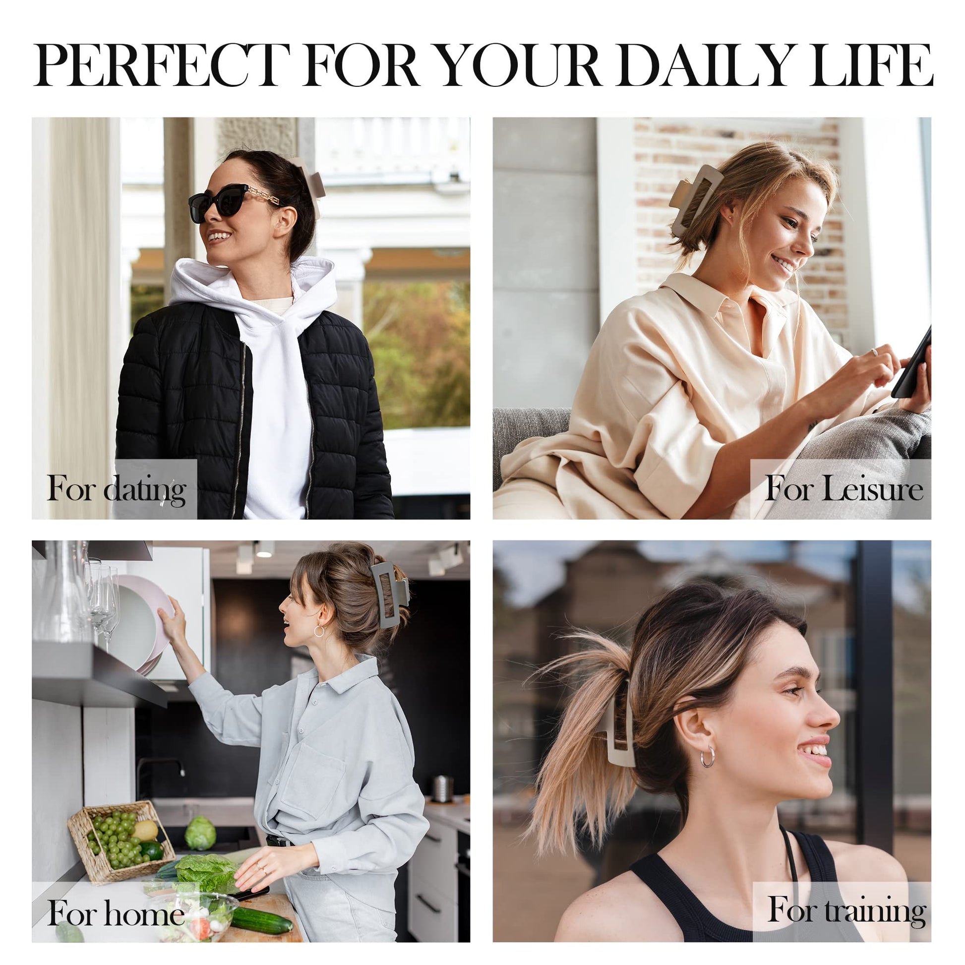 - 🐾【Perfect Size & Nonslip 】- 4.1'L x 1.75'W inches for each hair claw, a perfect size to hold all the hair volume. Each square claw clips set contains 8 different neutral matte color. These giant clips' inner teeth design can grip the tightly without slipping out.Our giant claw clips are good enough for thick, thin, curly, straight hairstyles and work for any hair length.