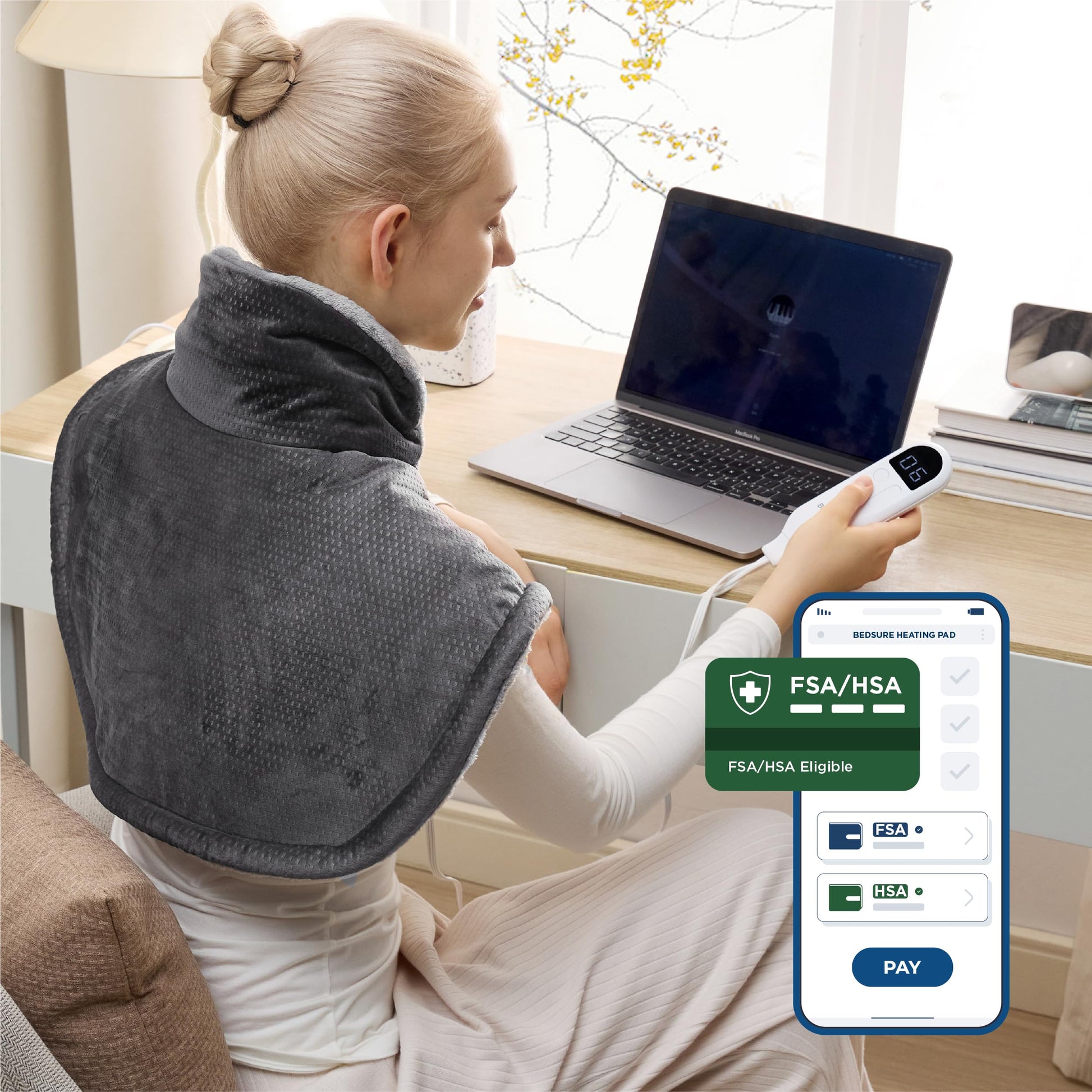 Bedsure Heating Pad for Neck and Shoulders Pain Relief - Birthday Gifts for Women Men Mom Mens, FSA HSA Eligible, Heated Pad 2.2lbs, Large Heated Wrap, 24" x 22", Grey