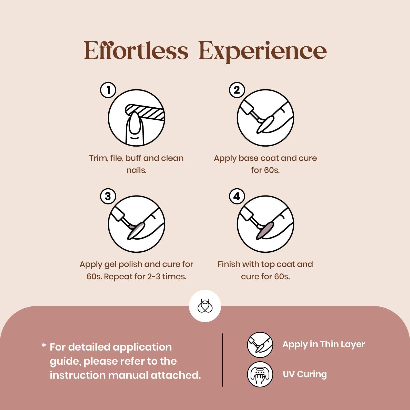 - Durable and Long-lasting: Our nail polish not only dries quickly but also has long-lasting durability. It's resistant to chipping and peeling, ensuring your nails stay looking flawless for longer. Nail polish, each layer of color, can produce different effects. It is recommended to apply a layer of dry and then apply the color of a layer for the best results! Remember to use UV LED lights to cure for 60-120s.