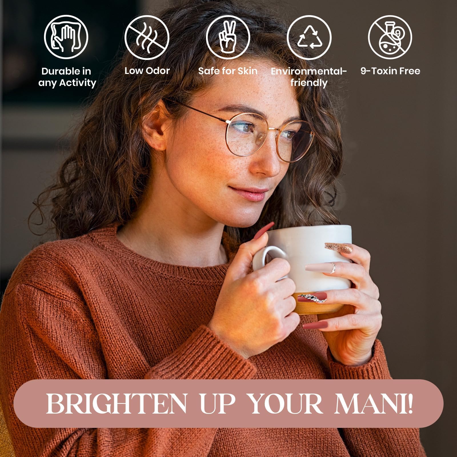 - Healthy Manicure: 9 Toxin-Free Ingredients make it healthy and low odor. No harsh ingredients or adhesives that lead to damaged nails. This item is UV gel. It is still sticky after curing. It must be used with a base coat and top coat! This item does not include base&top coat, which needs to be purchased separately.