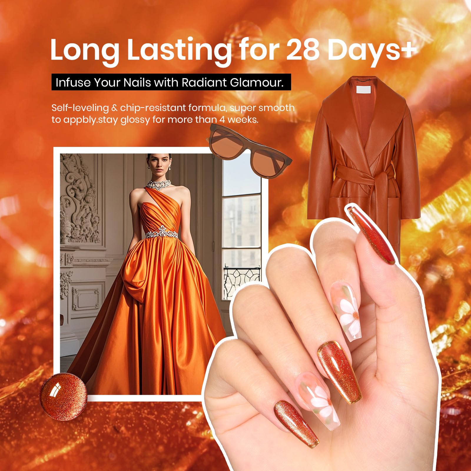 - Cat Eye Gel Nail Polish: Special 'Amber Gleam' gel nail polish with a magnet, create your 2025 limited shining nail style to be more sparkling every day. Tips: Place the magnetic stick over the surface about 3-5mm for 5-10 secs to get your desired effect!!!!