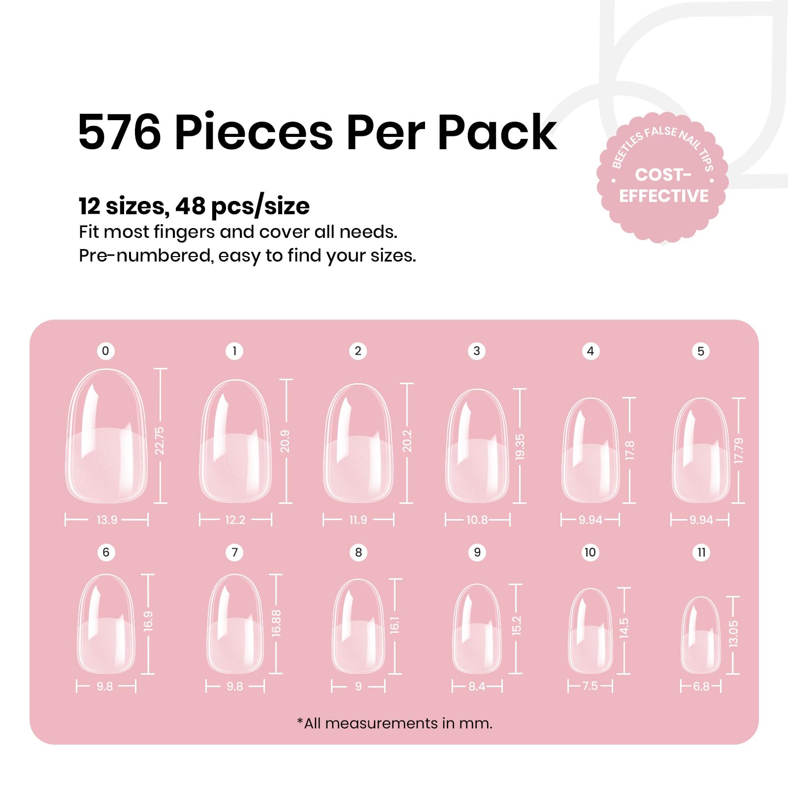 Beetles Gel Nail Tips Short Oval 576Pcs, 12 Sizes Pre-Shaped Half Matte Press On Nails Gelly Tips False Nails for Gel Full Cover False Nails Home DIY Nail Salon Gifts for Girls Women