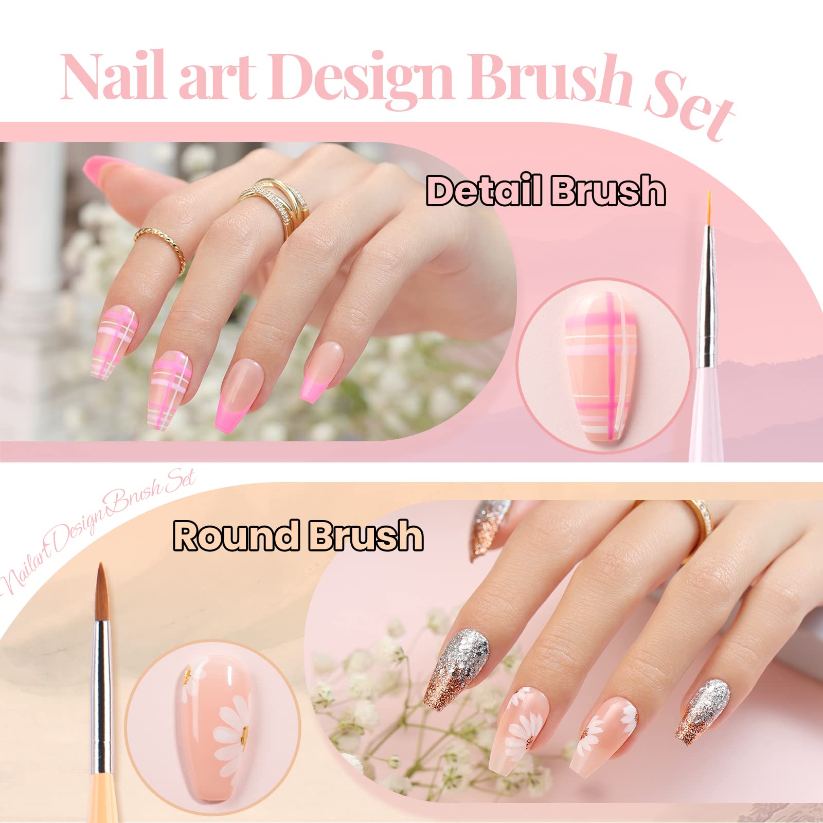 - BUNDLE SET–5PACK: Professional nail brushes come with 5 different nail design pens. Including nail extension gel brush, detail brush, gradient brush and nail round pen. They will give you beautiful nails right at home.