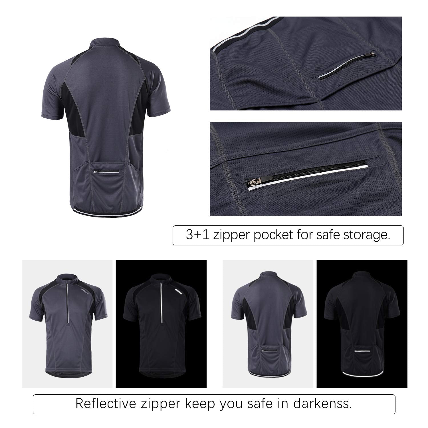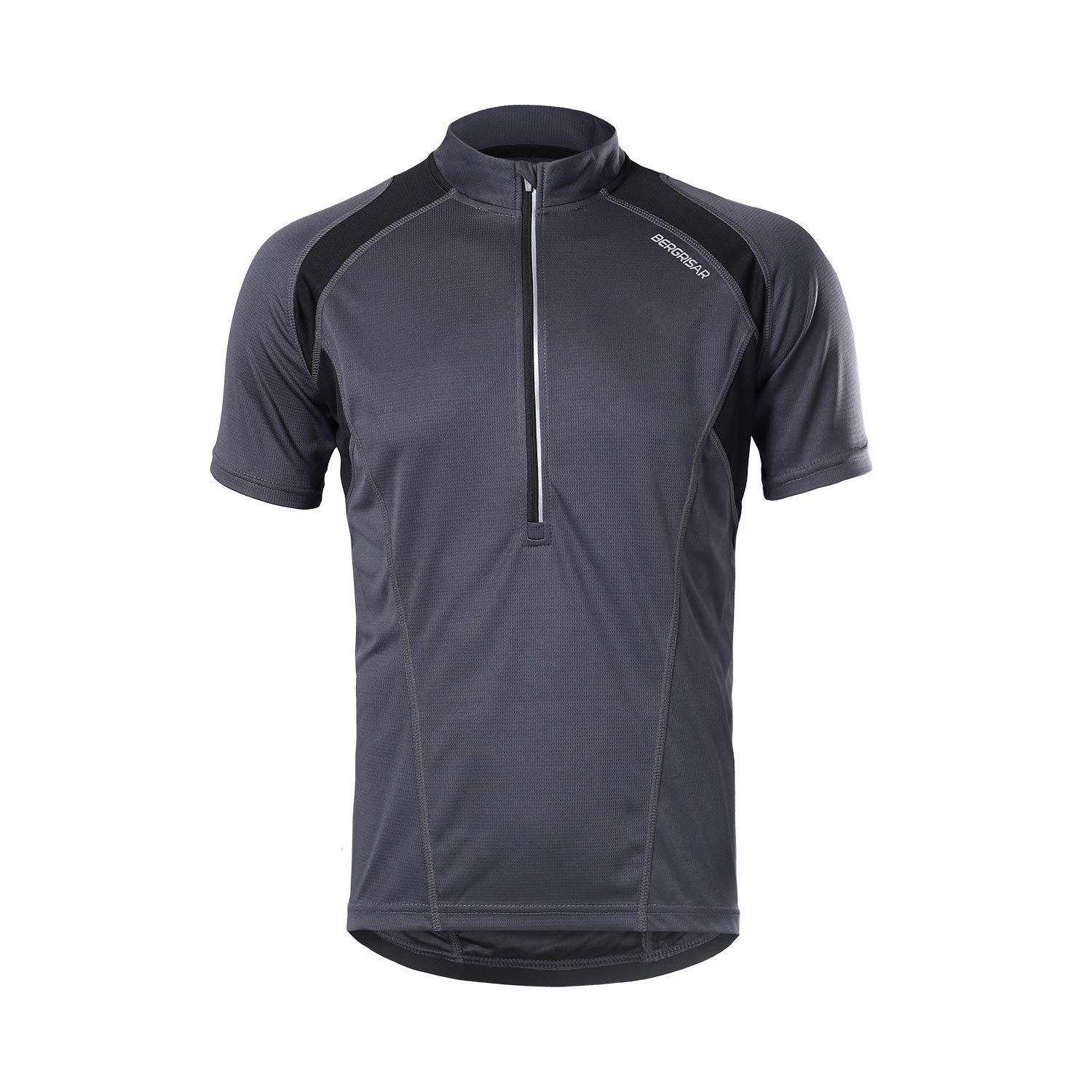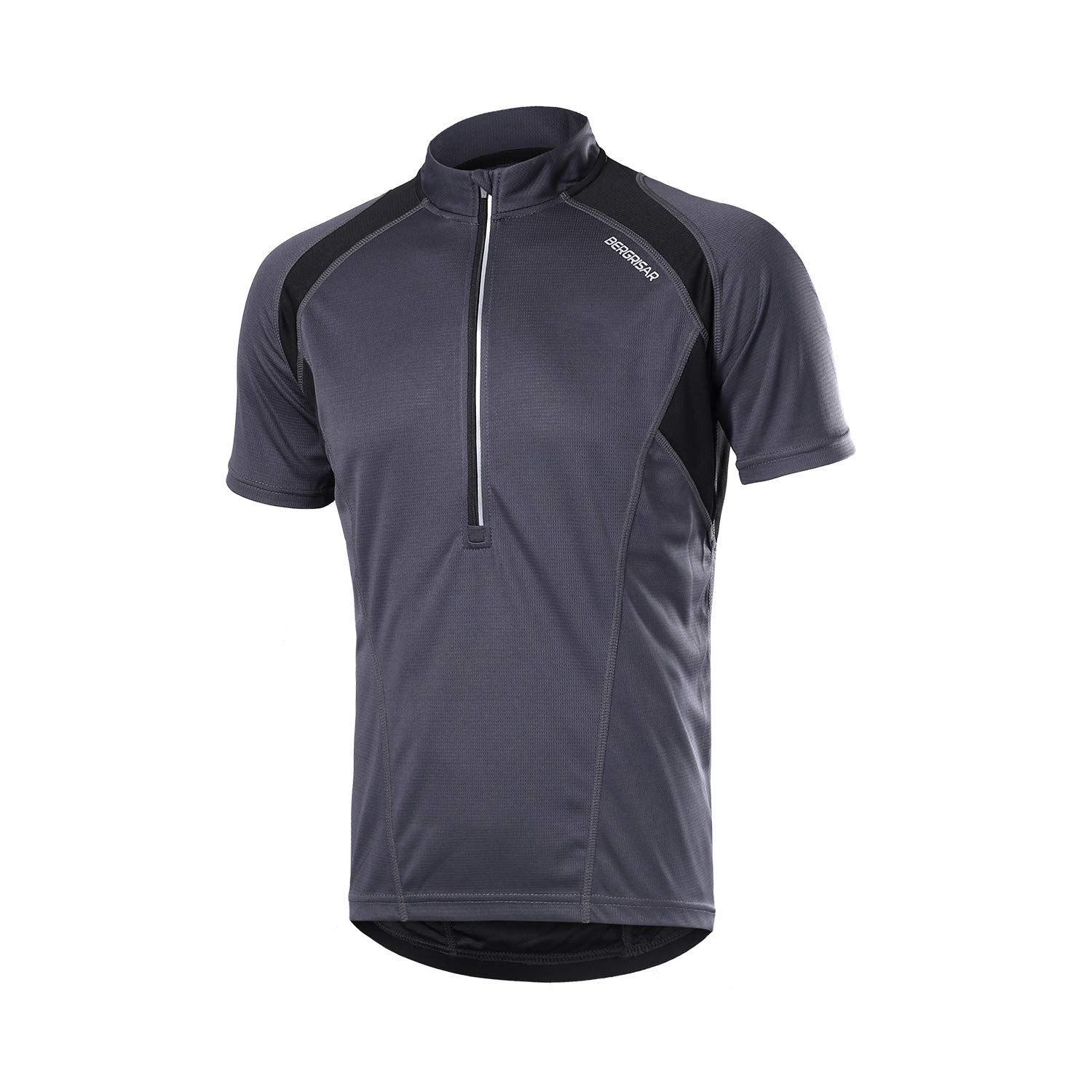 BERGRISAR Men's Half Zipper Cycling Jersey Short Sleeves Bike Bicycle Shirts with Zipper Pocket Quick-Dry Breathable BG060 Grey M