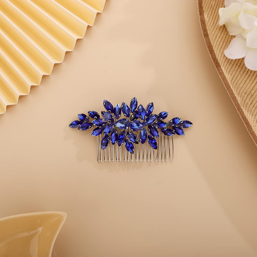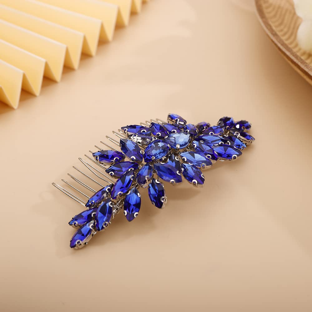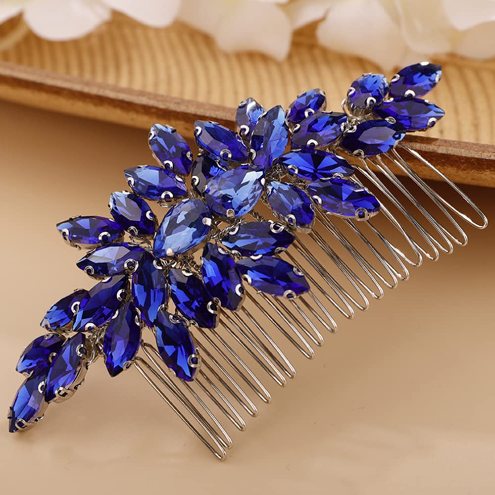 BERYUAN Crystals Hair Comb for Bride for Women for Girls Cute Teardrop Hair Comb Slide Multi-Color BLUE