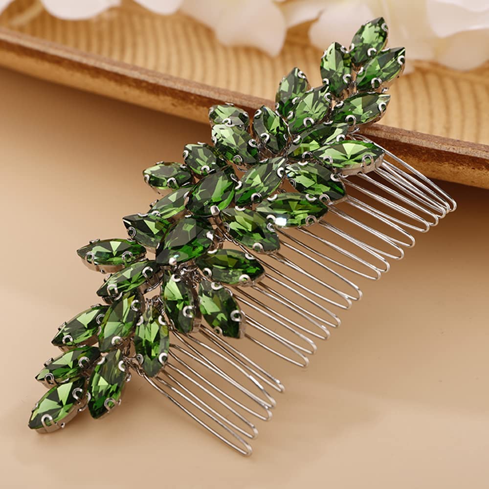 BERYUAN Crystals Hair Comb for Bride for Women for Girls Cute Teardrop Hair Comb Slide Multi-Color Green
