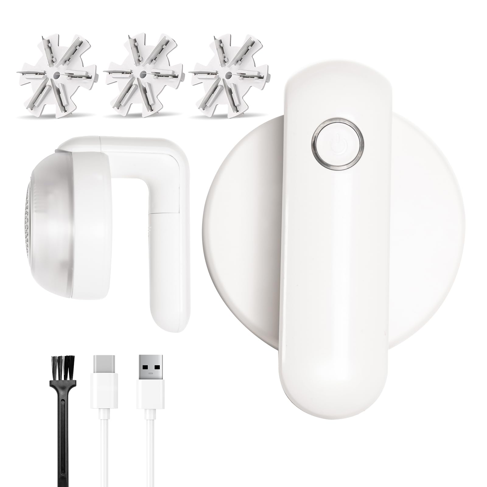 bestmoument Fabric Shaver, Lint Remover Rechargeable, Electric Portable Sweater Defuzzer Digital LED Display to Remove Pilling for Clothes, Furniture, Sweater, (White with Three Shaver Blades)