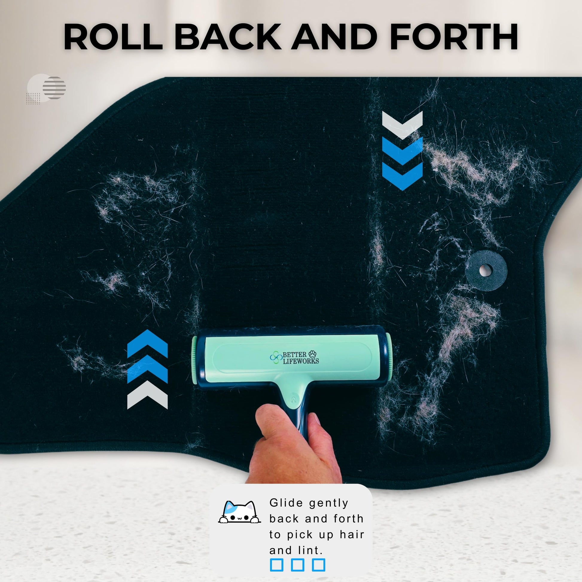 Better Lifeworks Reusable Pet Hair Remover-Lint Roller for Couch, Furniture, Carpet, Clothing and Bedding, Eco-Friendly Cat and Dog Hair Remover, Portable Pet Hair Removal Tool in Mint Green