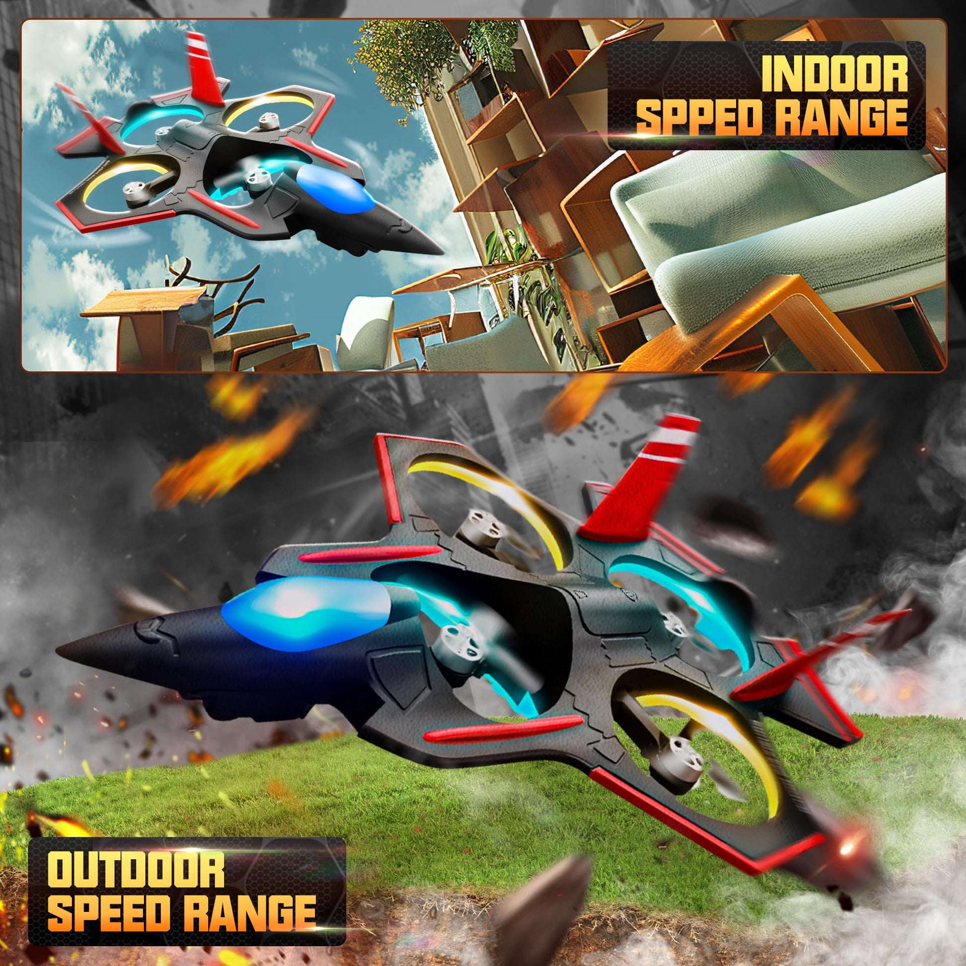 - Mesmerizing LED Light Show: Illuminate the night skies with our fighter jet toy's stunning LED light display. These vibrant colors add a touch of magic to every flight, making it an unforgettable experience for kids and adults alike. Whether flying during the day or under the stars, the remote control airplane's LED lights ensure you'll always be the center of attention.