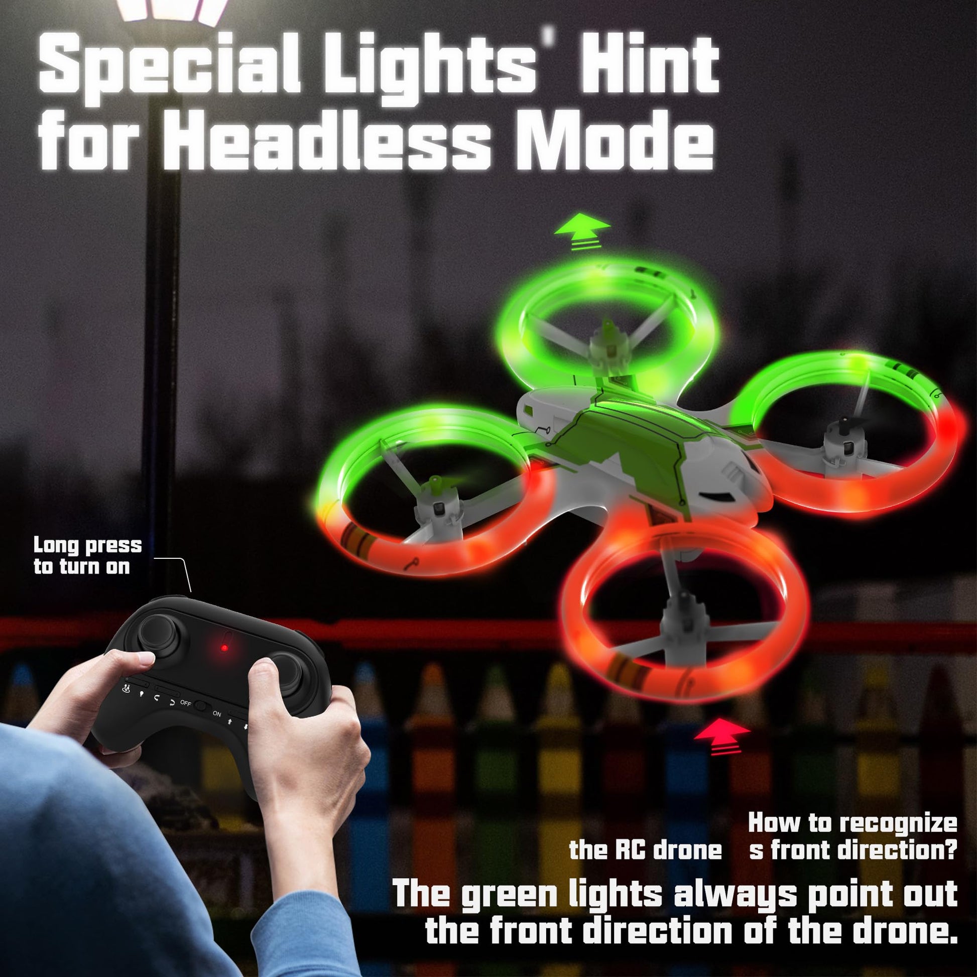 - 【Easy Remote Control Drone for Kids】: Fly this mini RC drone for boys and girls with a push of a button. The altitude holding function suspends the kids drones in the air ensuring a stable flight. The headless mode also avoids the beginners from losing their flying direction.