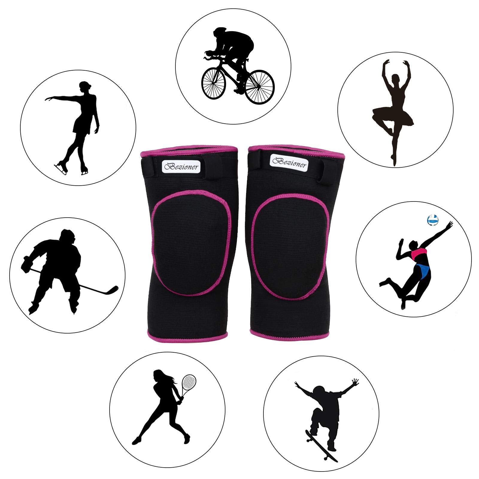 Bezioner Knee Pads Volleyball,Thick Sponge Anti-Slip,Dance Knee Pads for Women Yoga Basketball Football Youth Girls Black and Pink S