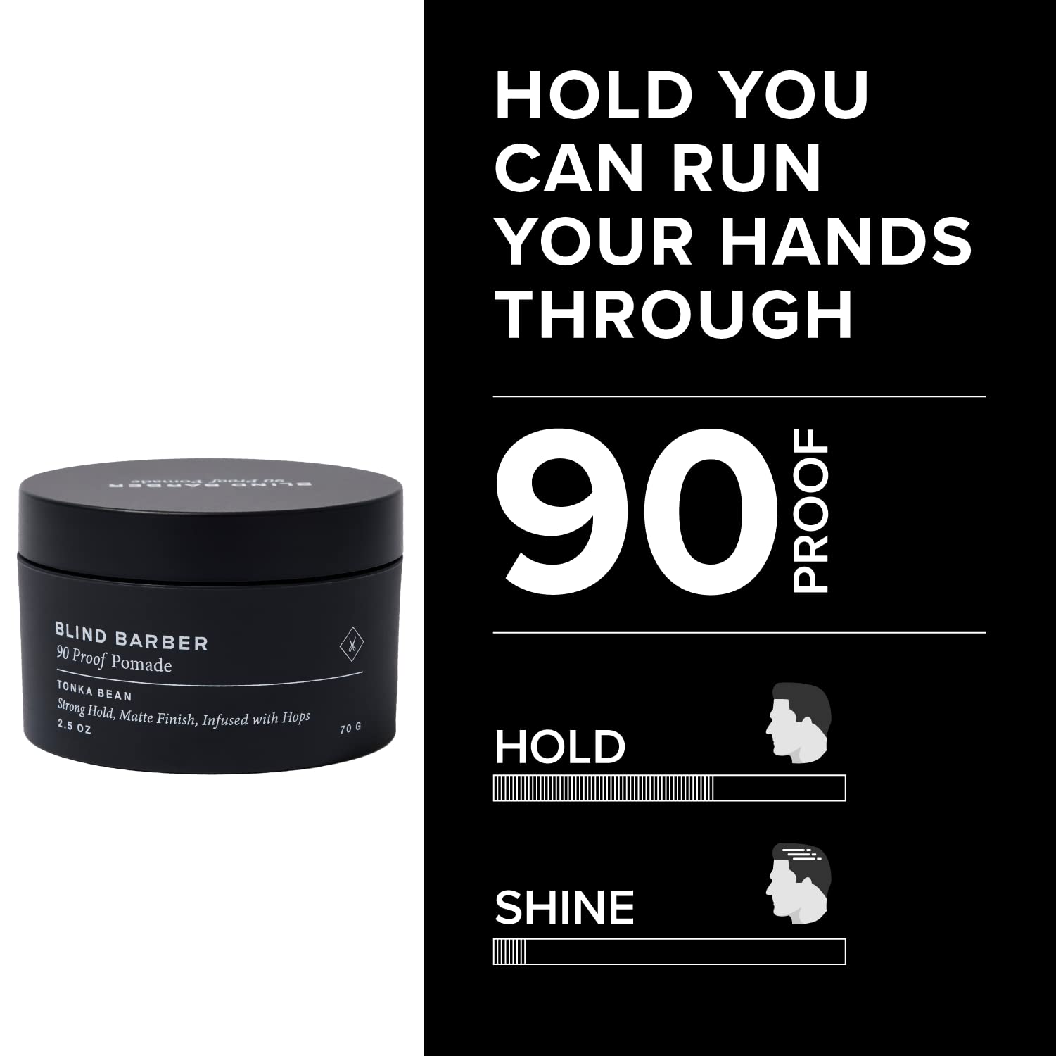 Blind Barber 90 Proof Hair Pomade for Men - Strong Hold, Natural Finish - Water-Based, Matte Pomade for Men with Hops & Tonka Bean - Free of Greasy Oils, Easy to Use - (2.5 Oz)