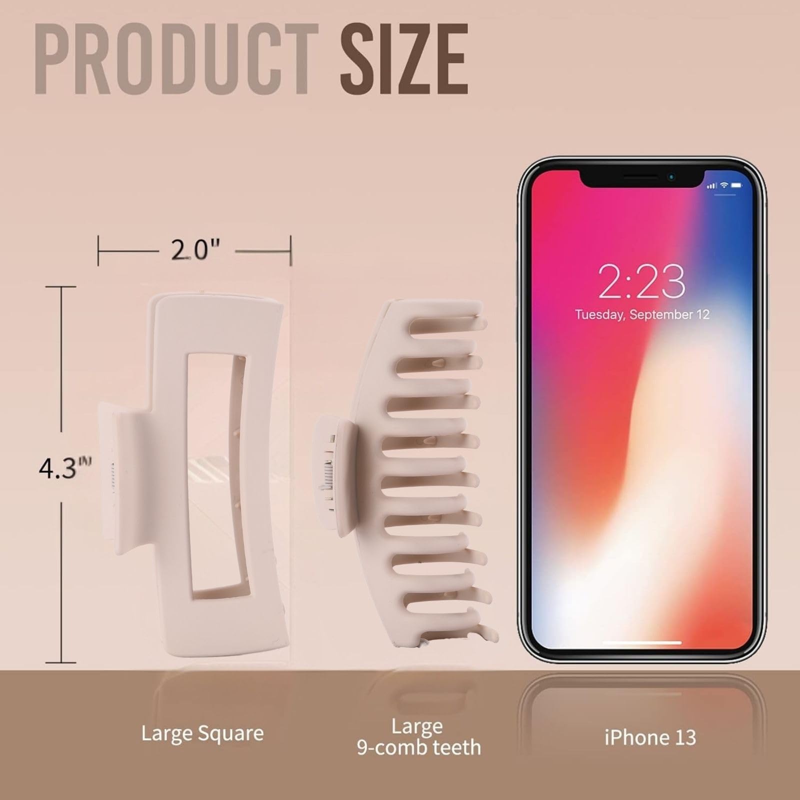 - PEFECT SIZE:The hair clips are 4.33*1.85*1.97 Inches. These hair clips are just the right size - hold all of your thick hair, but also would be tight enough for thinner hair.The have inner teeth for a more secure hold. These clips are the perfect size! Sturdy and thick, they hold your hair in place beautifully .Just stretch the teeth around your hair and it kept it in place .