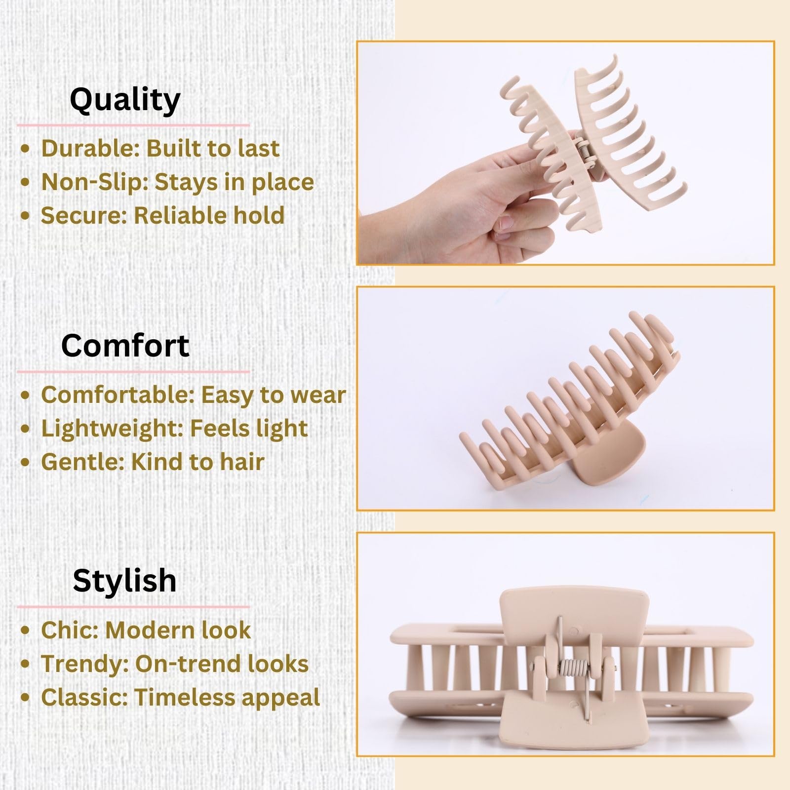 - NON-SLIP:The matte coating does a good job keeping your straight smooth hair from slipping out, but without pulling or grabbing it like a rubber would.these claw clips are non-slip, so you can be assured that your hair will stay put.