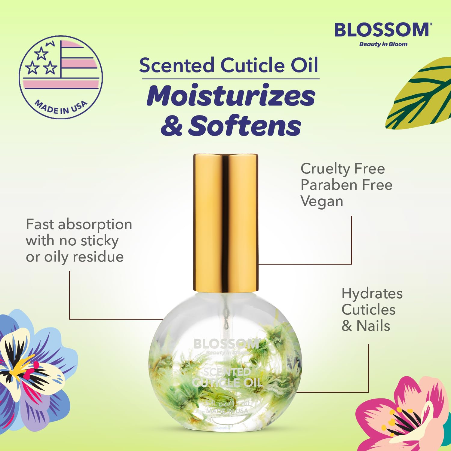 - BLOSSOM SCENTED CUTICLE OIL FOR NAILS AND CUTICLES: Choose from a variety of scented Blossom cuticle oil for nails and cuticle care, FLORAL (lavender, hibiscus, jasmine, rose, honey suckle & spring) FRUITY (cherry, grape, orange, strawberry) GOURMAND (Pumpkin Spice, Almond Biscotti, Chocolate Truffle) or Amazon Exclusive (Coconut, Lemongrass, Lily, Raspberry, Watermelon) scents in 0.5oz or 1oz bottles. Each nail and cuticle oil is infused with real flowers and makes the perfect beauty accessory