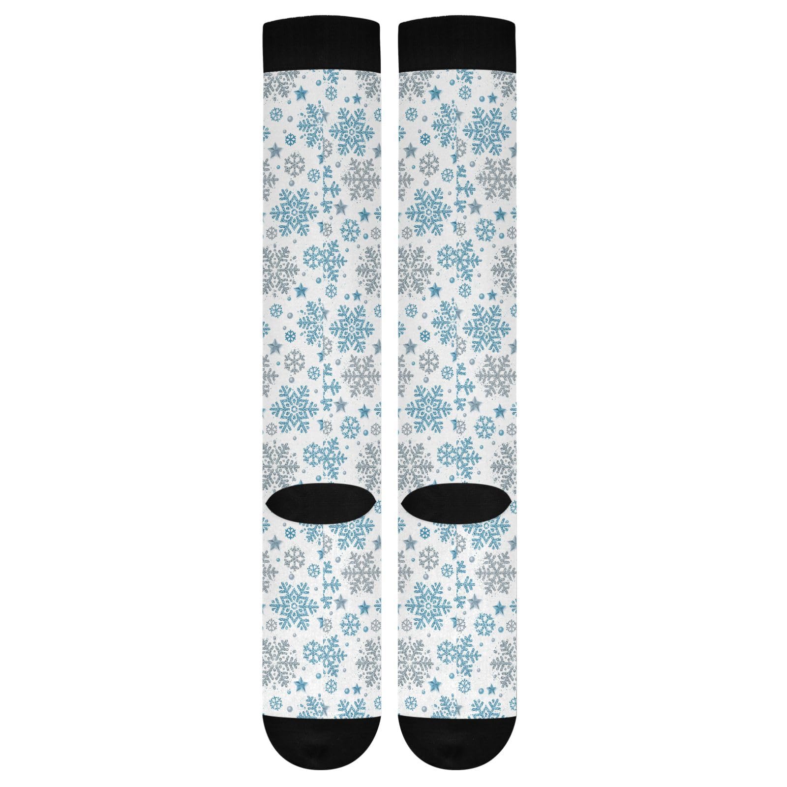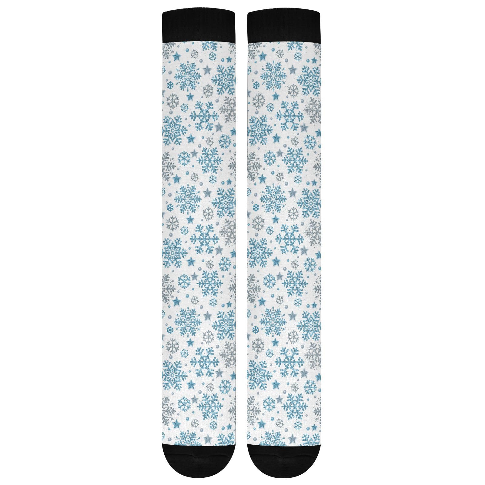 Blue Snowflakes Compression Socks for Women and Men Circulation Winter Long Socks for Athletic Running 1