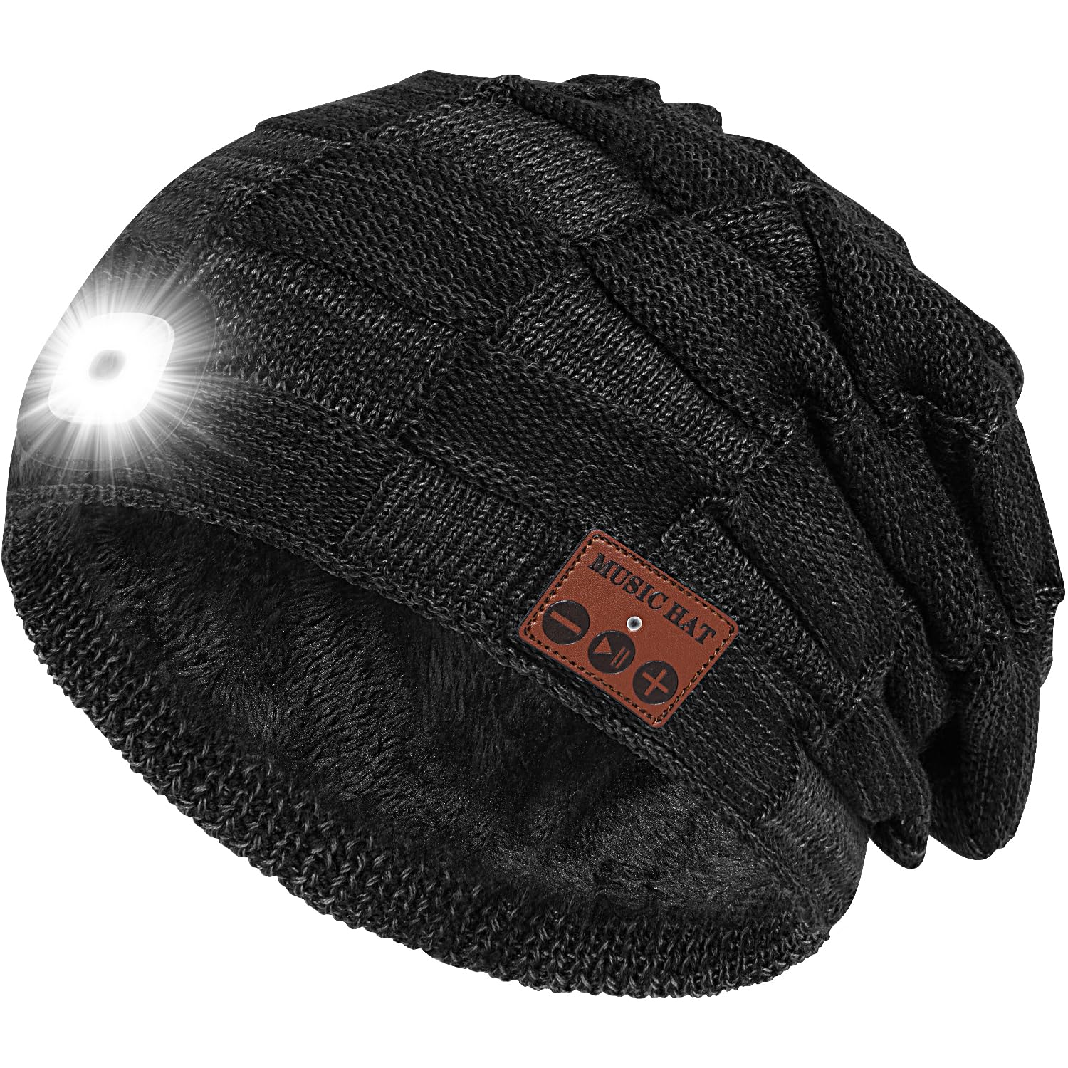 Bluetooth Beanie with Light for Men, Beanie with Light Unisex USB Rechargeable Hands-Free 4 LED, Headlamp Cap with Wireless Headphones Built-in Speaker Mic Gifts for Men Dad Teen (Black)