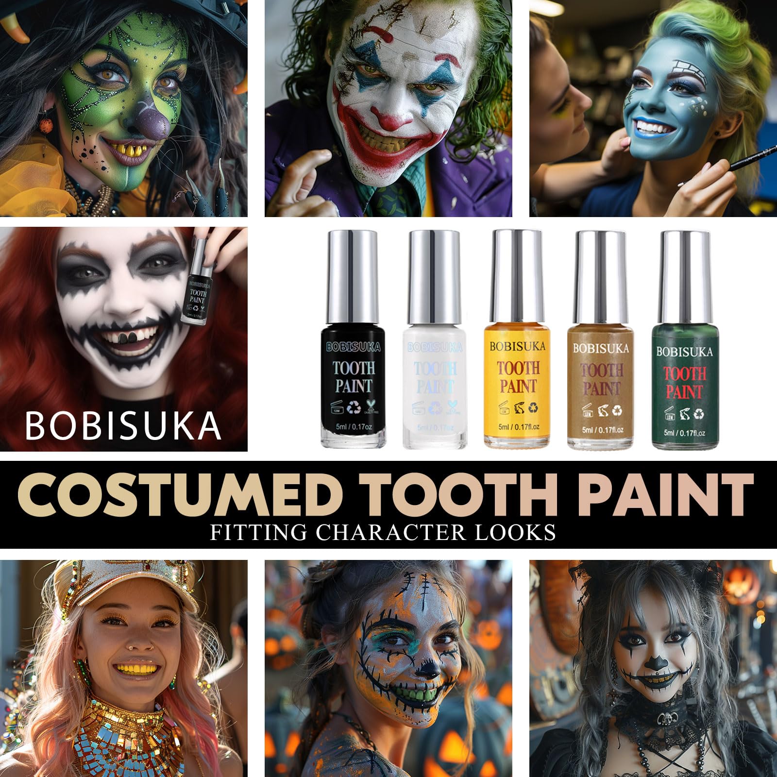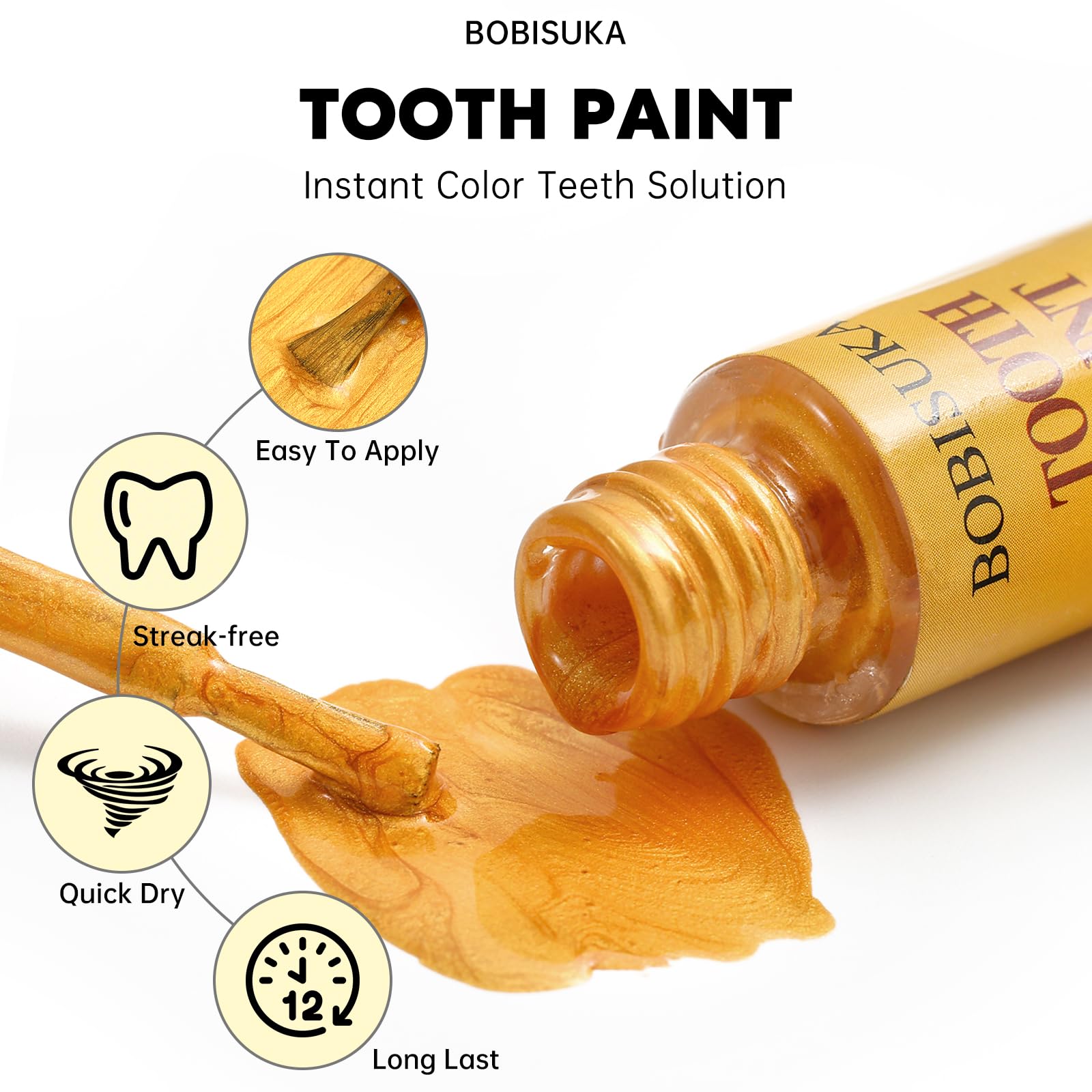 BOBISUKA Gold Tooth Paint, Professional Gold Costumed Teeth Paint - No Streak, Safe, Long Last SFX Tooth Makeup Paint, Perfect for Cosplay, Halloween Makeup, Theater, and Special Effects (5 ml)