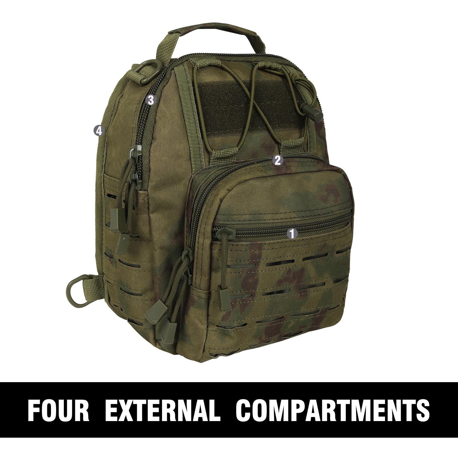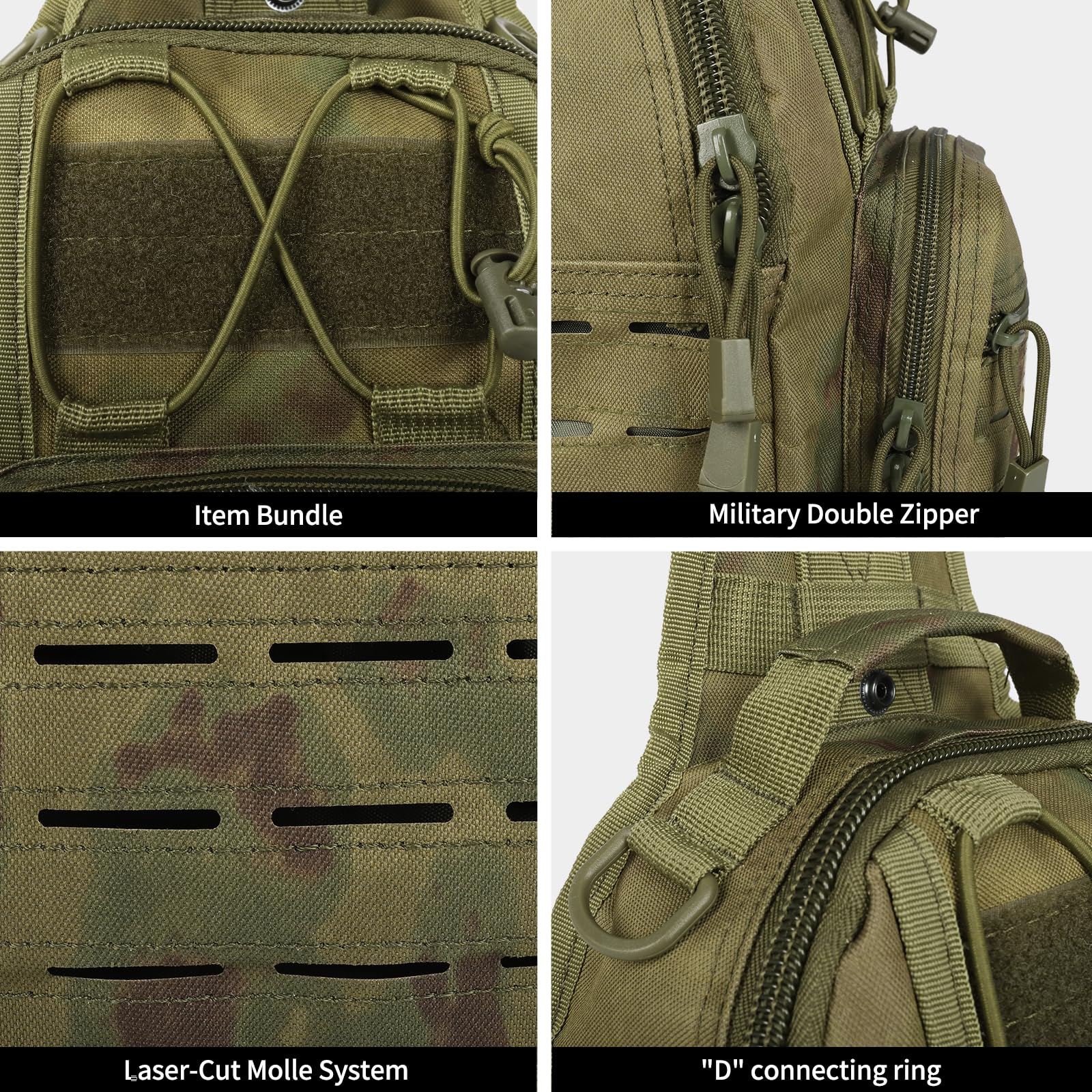 - 【HUMANLIZED DESIGN】The tactical bag has many advantages that make it more practical: Detachable shoulder strap with pad, reversible shoulder strap direction, Laser-cut MOLLE webbing, personalized applique patches, scupper in bottom, D type connecting ring, featuring a padded back pocket for small handguns...