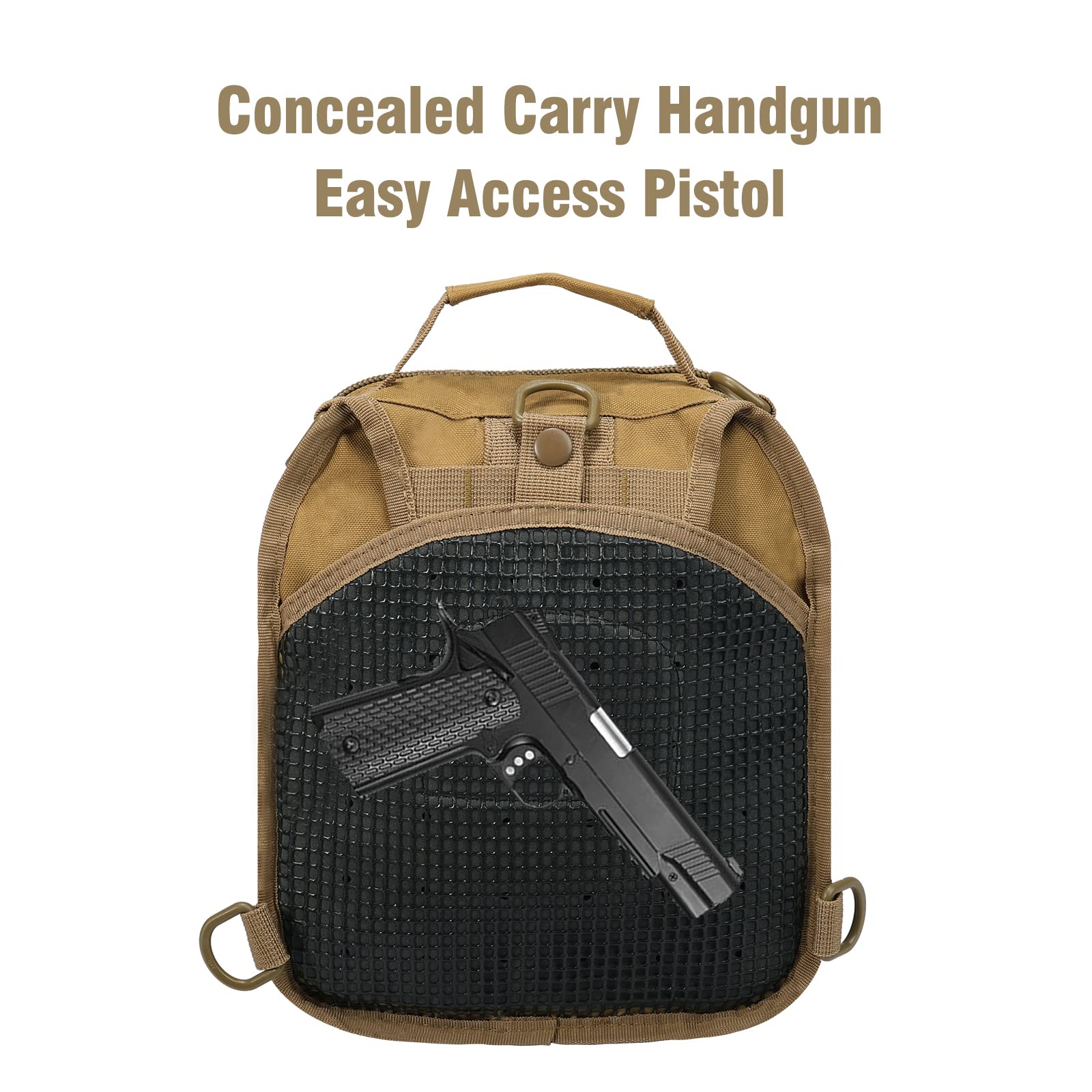 - 【HUMANLIZED DESIGN】The tactical bag has many advantages that make it more practical: Detachable shoulder strap with pad, reversible shoulder strap direction, Laser-cut MOLLE webbing, personalized applique patches, scupper in bottom, D type connecting ring, featuring a padded back pocket for small handguns...