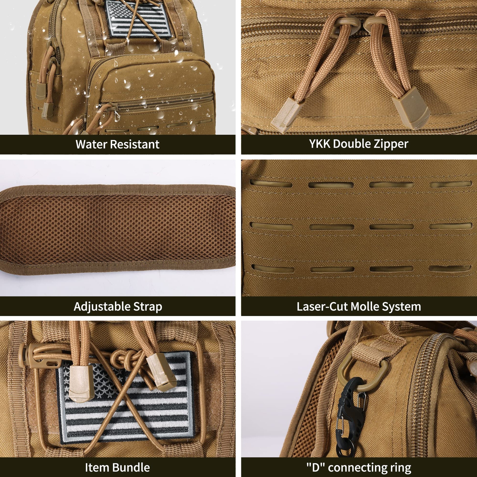 BOMTURN Tactical Backpack Sling Bag - 1000D Waterproof Military Backpack // Chest Bag // CCW Bags Outdoor Shoulder Bag with USA Patch for Every Day Carry