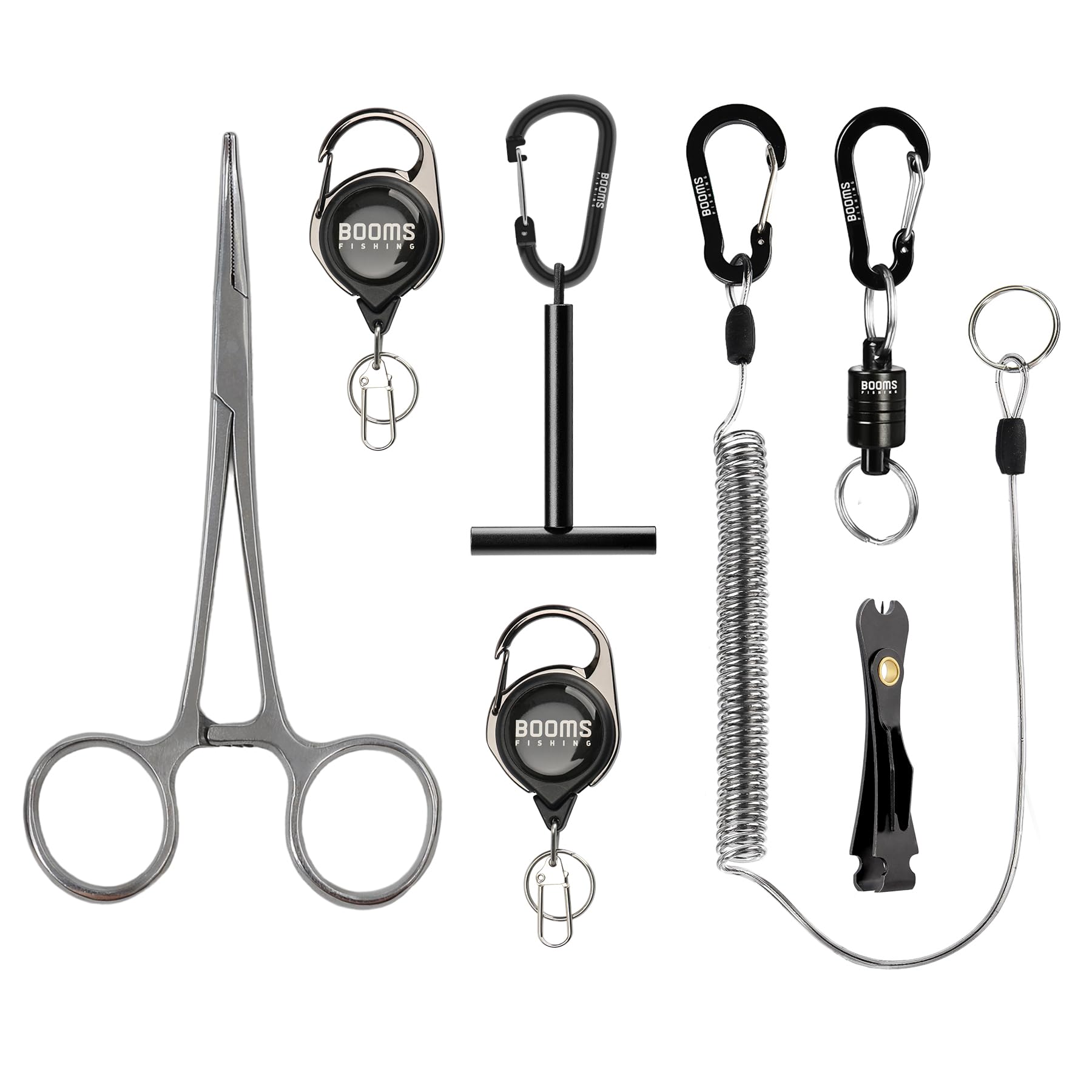 Booms Fishing FF3 7 PCS Fly Fishing Tools Kit, Fishing Knot Tool and Line Clipper Retractor, Magnetic Net Release with Lanyard, Fly Fishing Tippet Spool Holder, Hook Remover Forceps