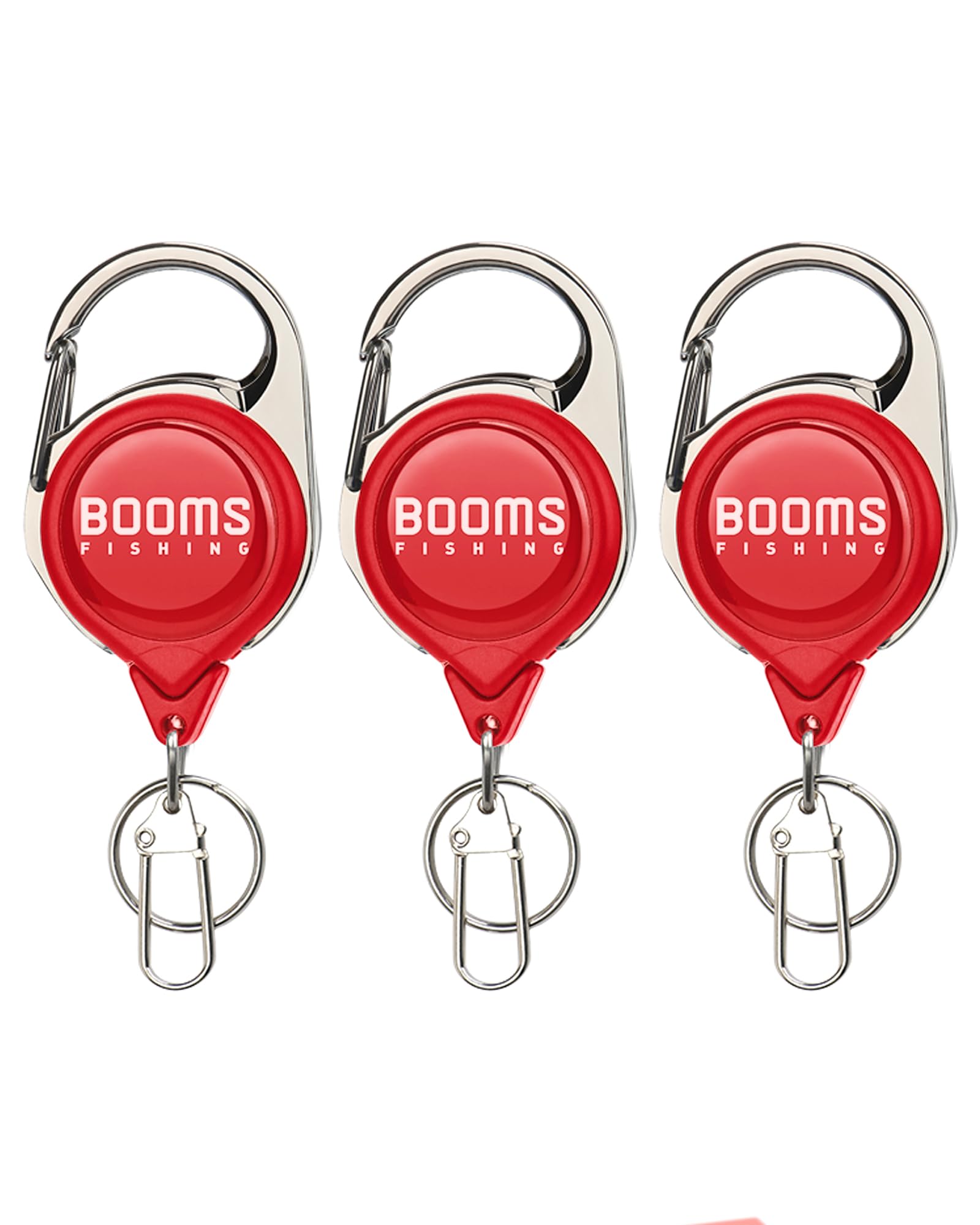 Booms Fishing RG1 Fly Fishing Zinger Retractor, 3pcs Red Retractable Keychain