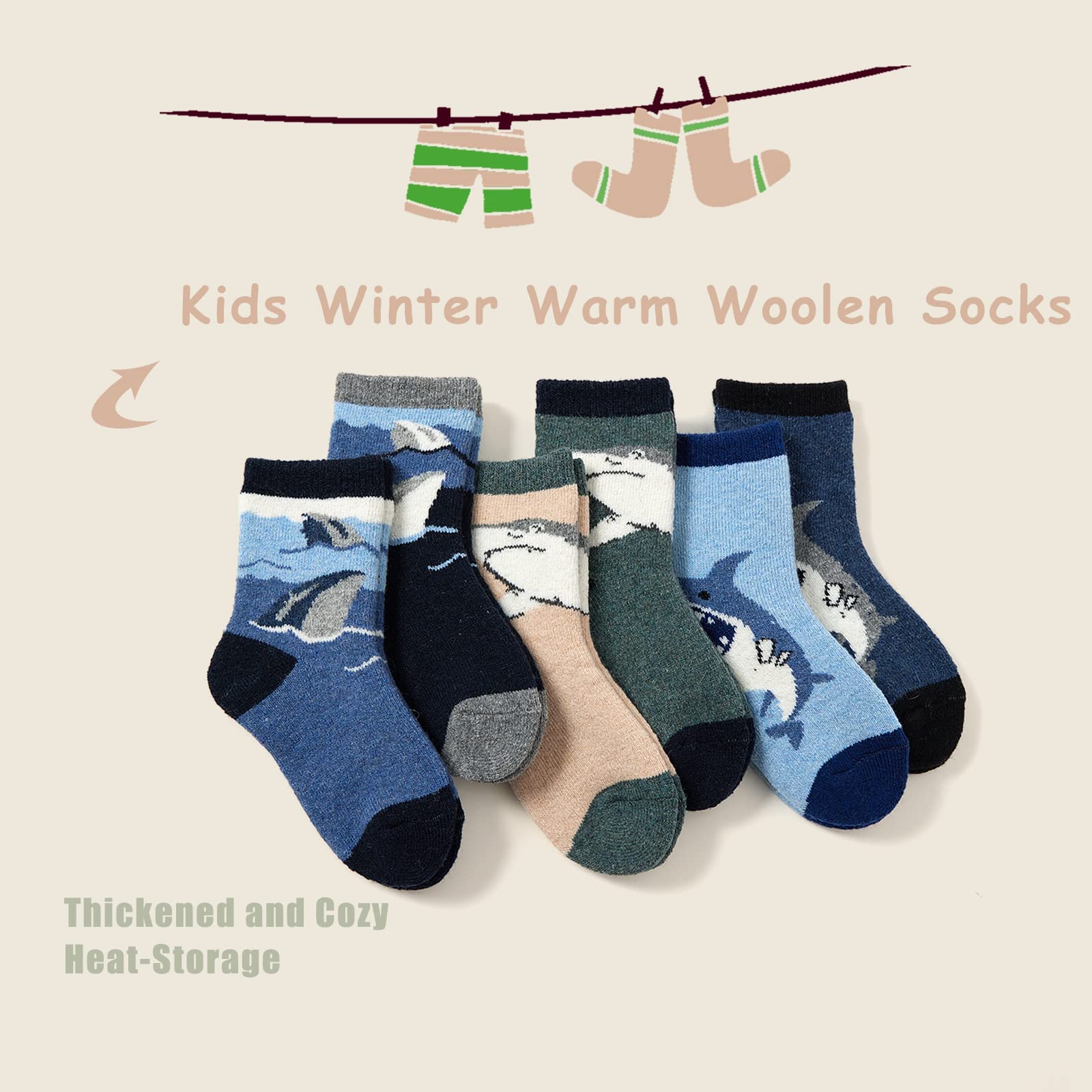 Boys Wool Socks Kids Thick Winter Socks Thermal Crew Socks for Boys 6 Pairs Big Sharks Size 6-8 Years