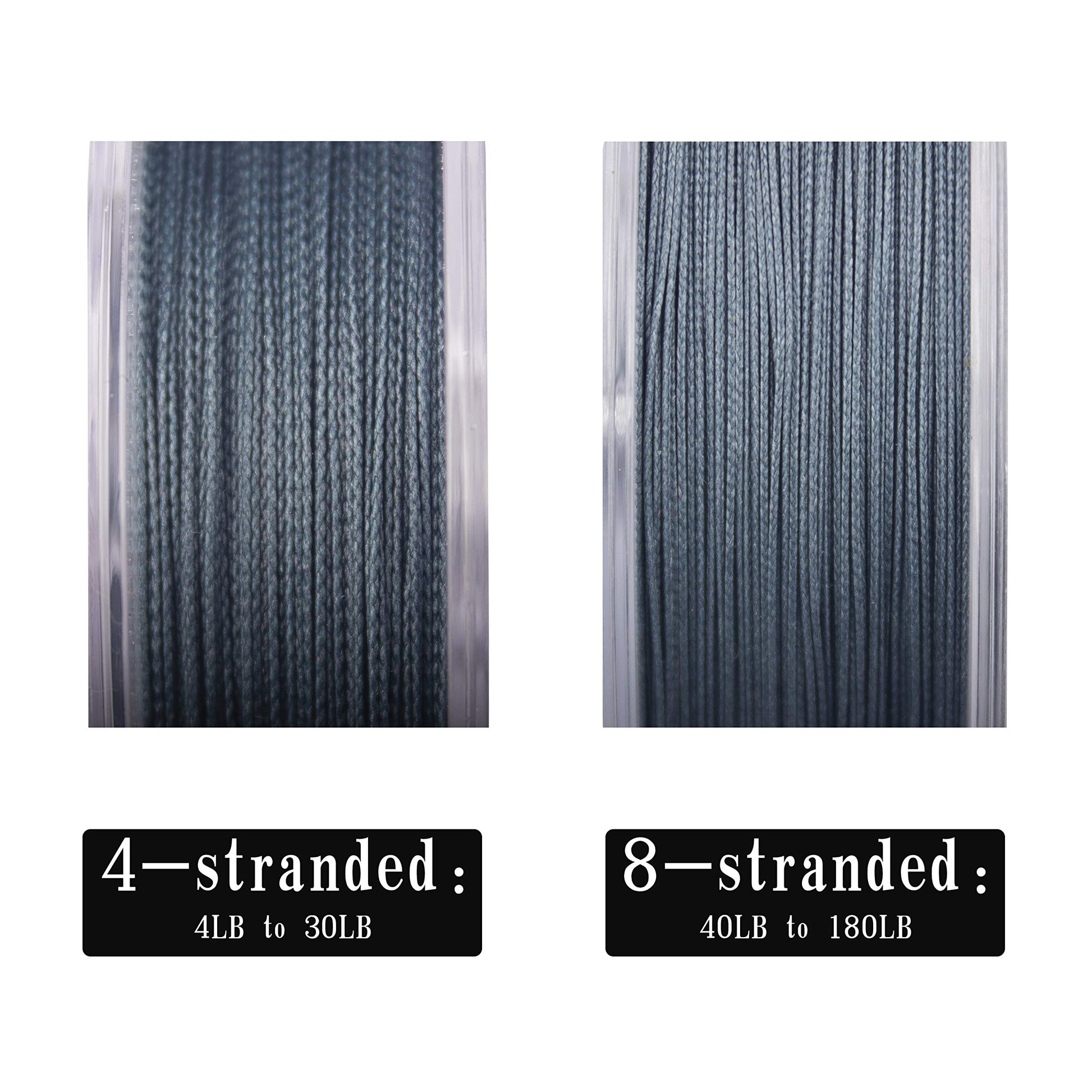 SUPER THIN AND PRECISE BRAID CRAFTS: Precision Braiding and high quality Fiber: 4lb-30lb is made with 4 strands and the 40lb-180lb has 8 powerful strands for even more power.And a smaller profile resulting in better casting and it will make knot more easy and more strength. It's thin enough so that it can faster cutting water help your bait reach the target water layer faster than ever. and backlashes free.