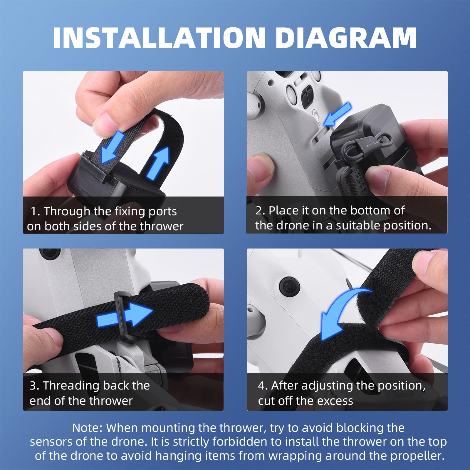 - Quick removal and installation - Customized Hook and Loop fixing straps, adjustable length according to model (excess length can be cut off), comes with hanging loop and high quality drop cord, no need to prepare other tools.Some drone will mask the bottom function, but it does not affect the use.