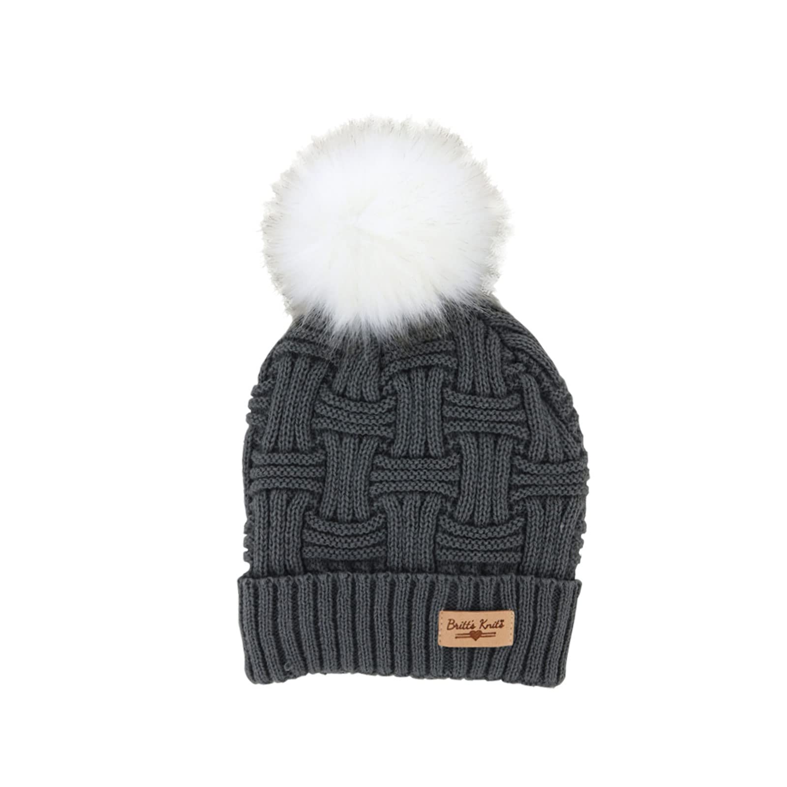 Britt's Knits Women's Plush-Lined Knit Hat with Pom, Charcoal, One Size