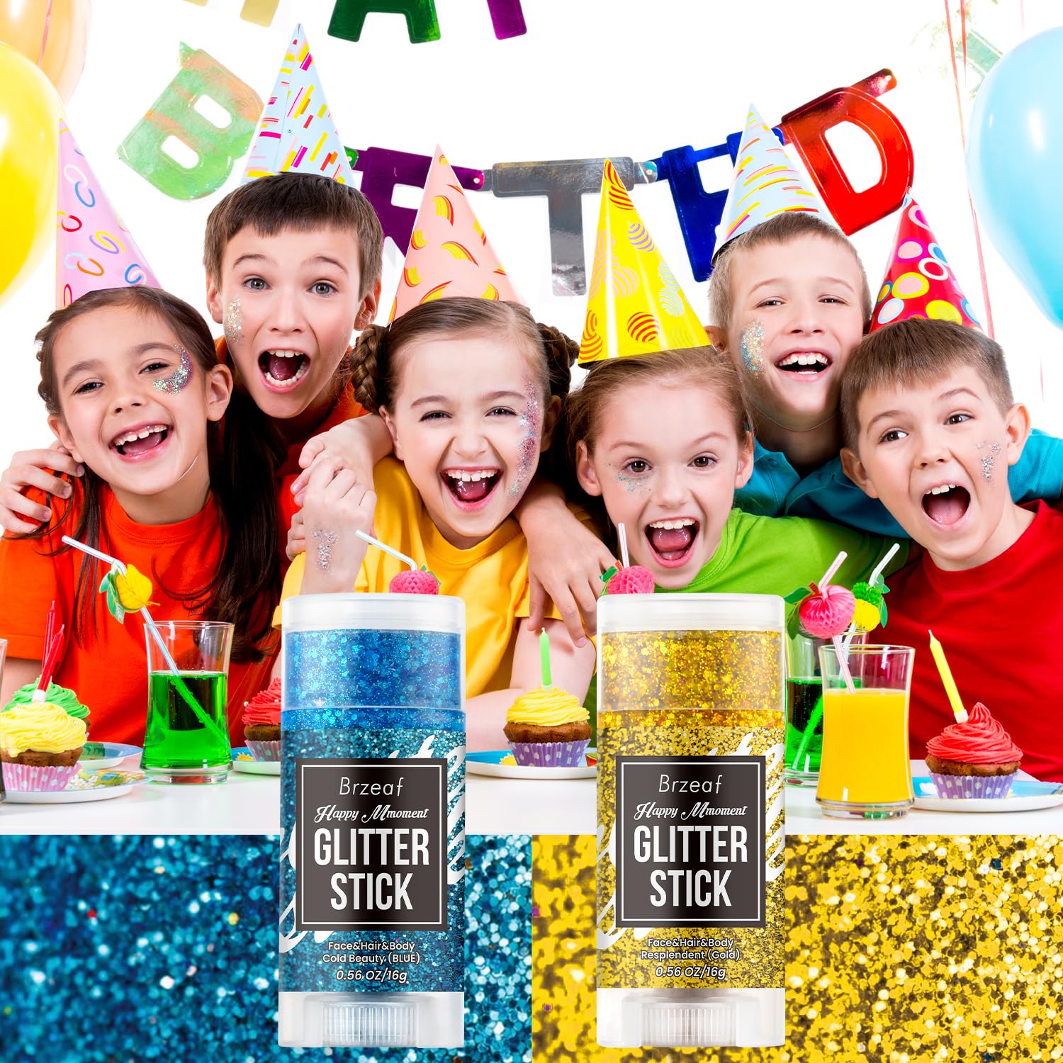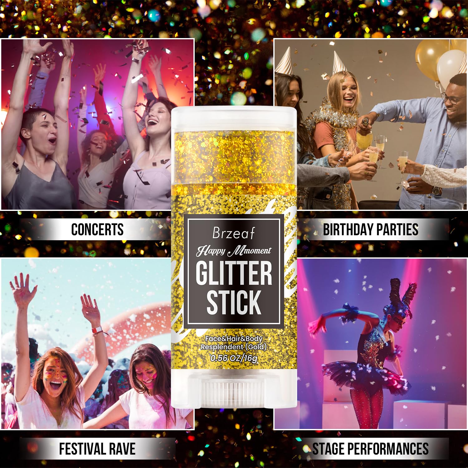 Brzeaf Waterproof Gold Glitter Stick, Face Glitter Makeup, Shimmery & Long Lasting, Chunky Glitter for Face/Body/Hair/Eyes/Lip, Singer Concert Music Christmas Rave Festival