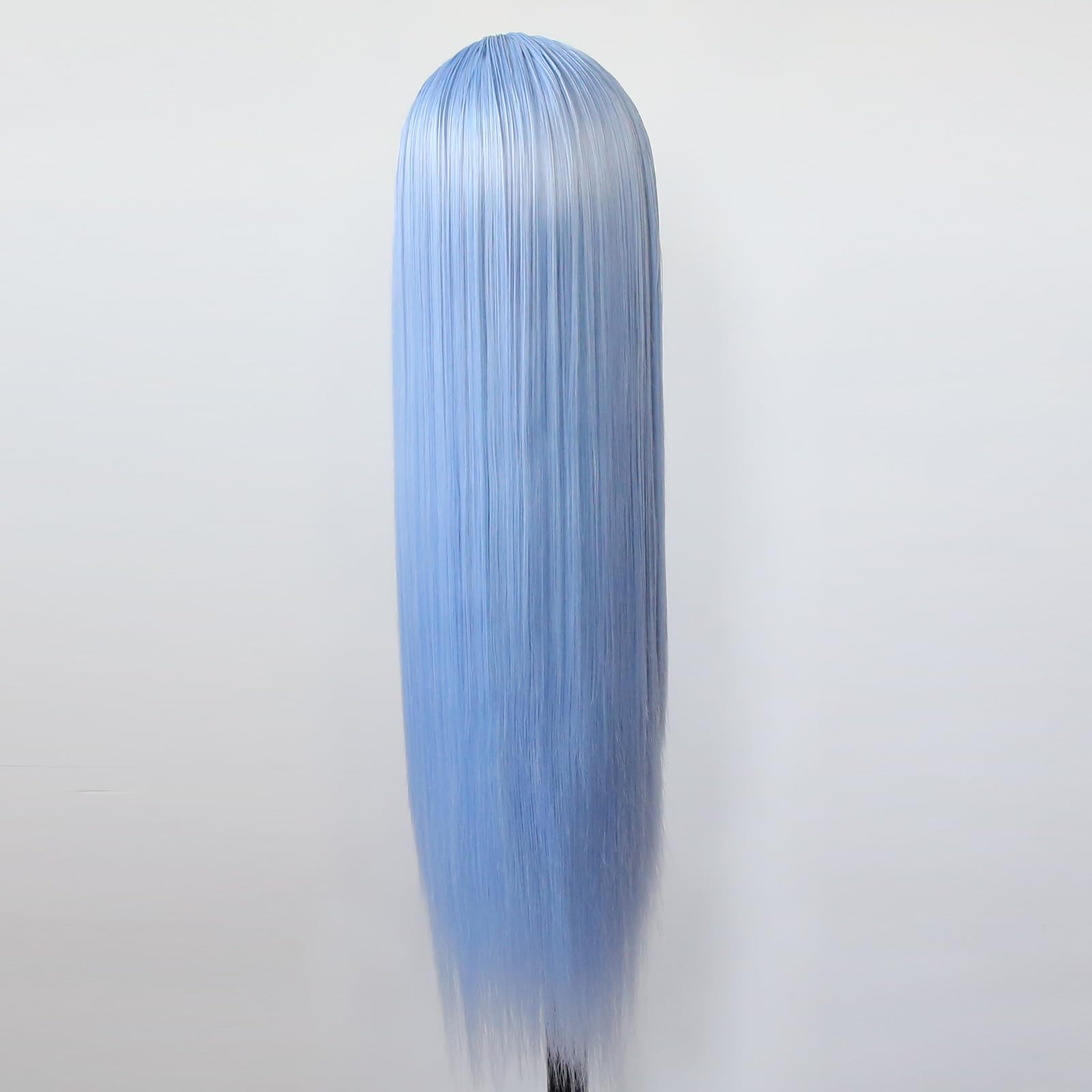 BTWTRY Light Blue Wig Long Straight Sky Blue Lace Front Synthetic Wigs Pre Plucked Natural Hairline for Black Women Heat Resistant Fiber Hair Cosplay Daily Wear Wig (Light Blue)