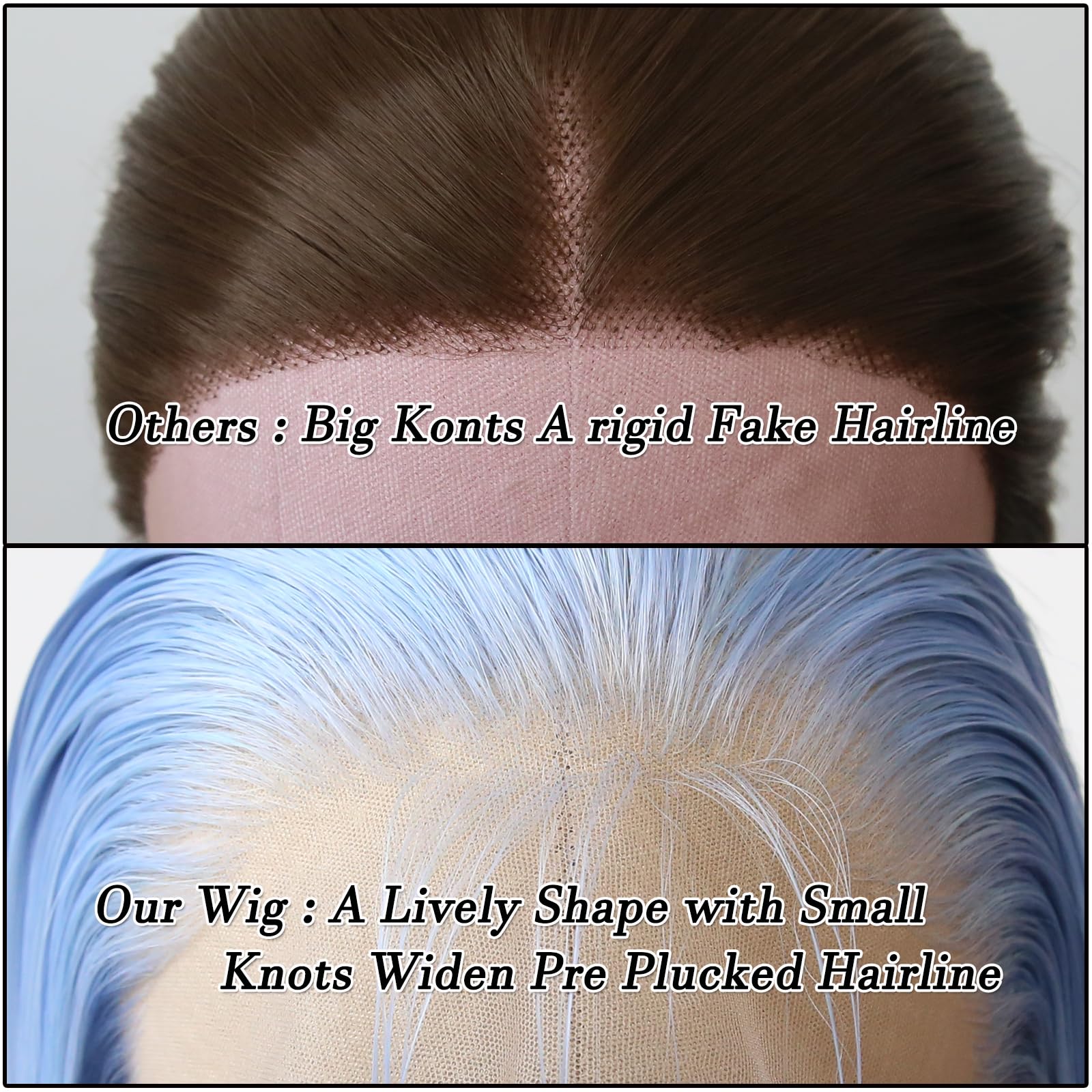 - Light Blue lace front synthetic wig pre plucked natural density widen hairline more realistic,Hand tied 13x3.5inch Light Blue lace front synthetic wig