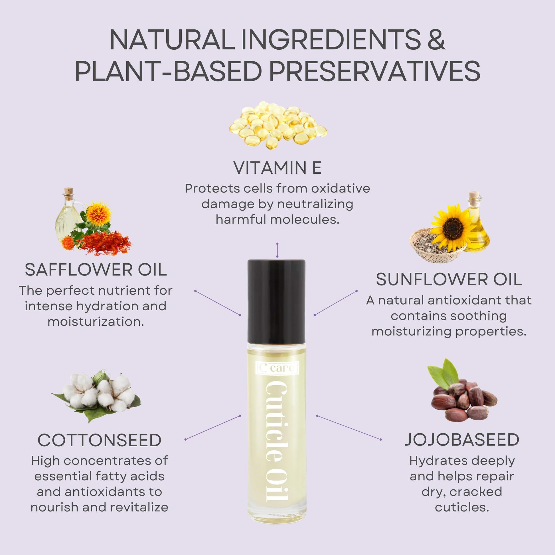 C CARE Fragrance Free Roll-On Cuticle Oil | Natural Revitalizing Hydrating Nail Oil | Repaires Cuticles Overnight | For Damaged Skin And Thin Nails | Paraben Cruelty Free Formula | 10ml