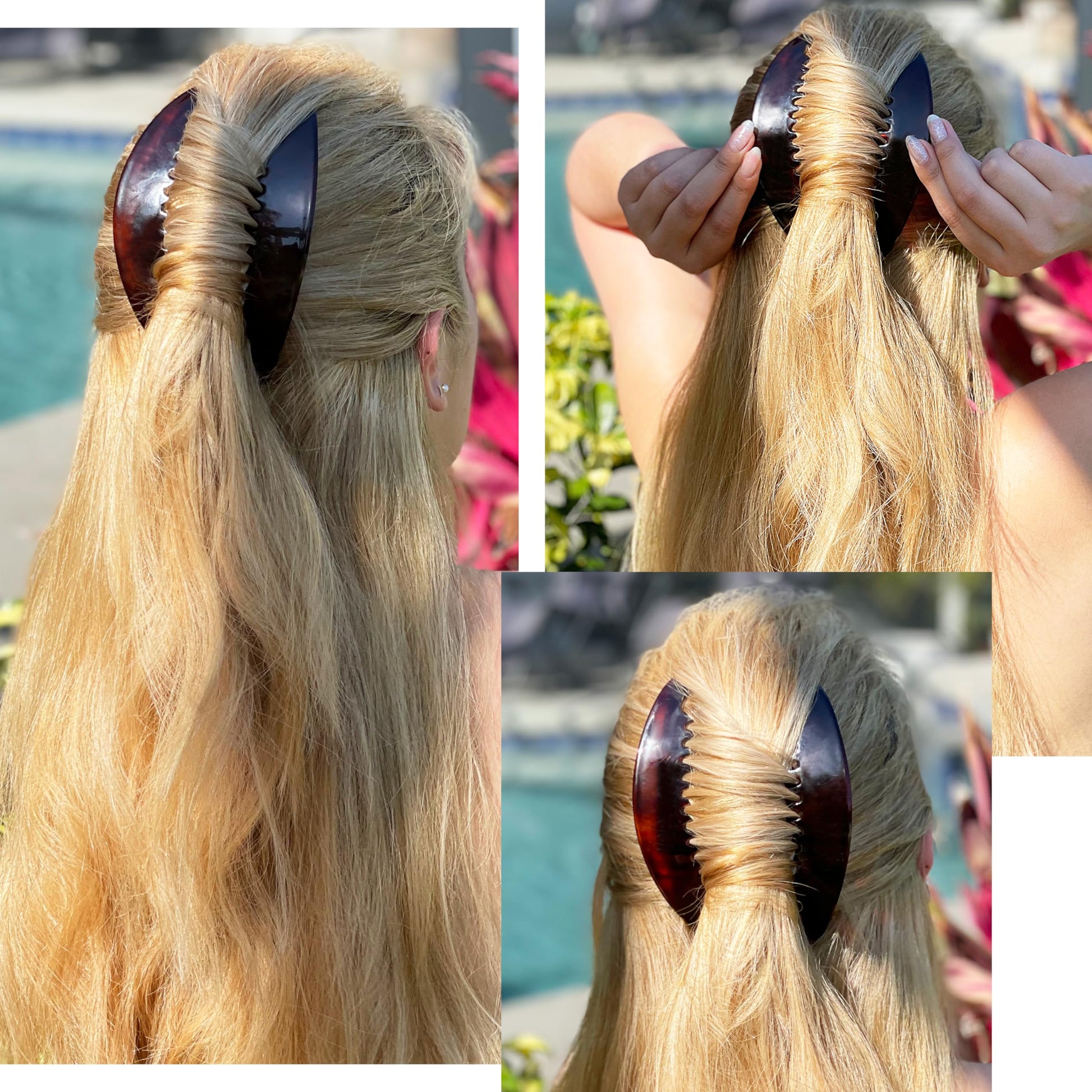 - Women's Stylish and Fashion, designed and Made in France with durable Cellulose Acetate, a high quality strong and sturdy material for Hair Ornaments, they are not easy to break lightweight and comfortable to wear, you can use them every day and on special occasions . Other materials can be damaging your hair, they have small ridges on each tooth that can easily damage hair and cause breakage.