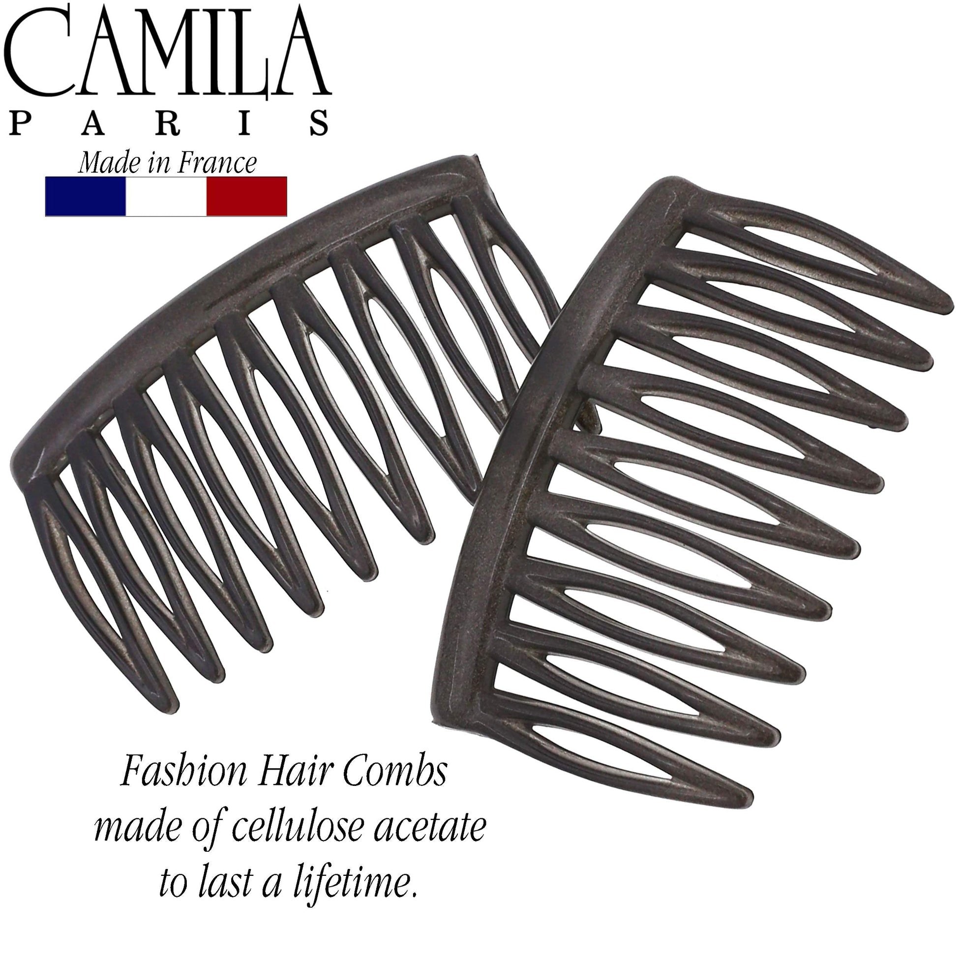 Camila Paris CP3110 French Hair Side Comb, Small, Curved Gray French Twist Hair Combs Decorative, Strong Hold Hair Clips for Women Bun Chignon Up-Do Styling Girls Hair Accessories, Made in France