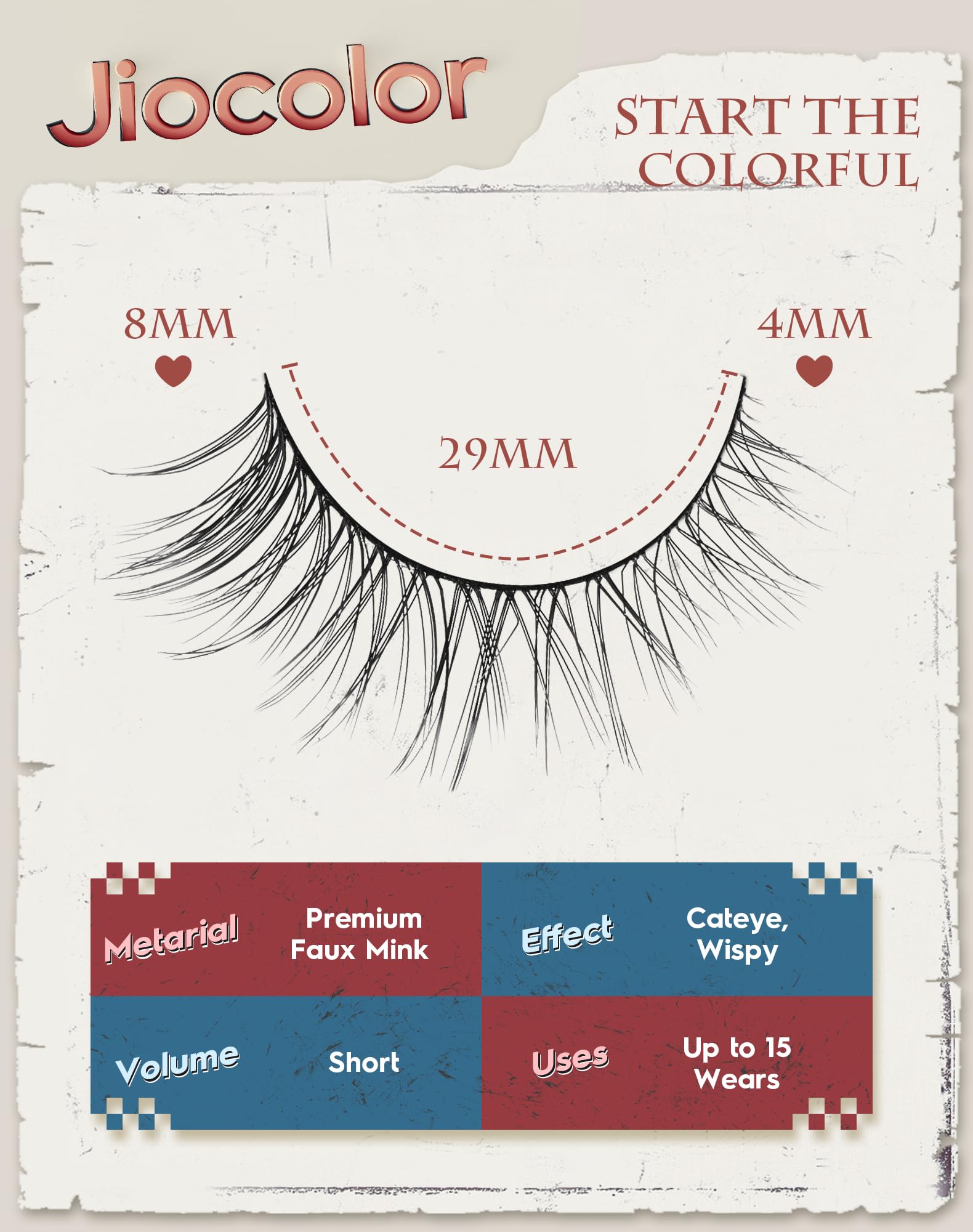 - Ultra-thin lash band:Jiocolor eyelashes feature an ultra-thin lash band. With the super-fine band, the false lashes look thinner and more natural than other lashes on the market. It's time to try a new feeling lash.